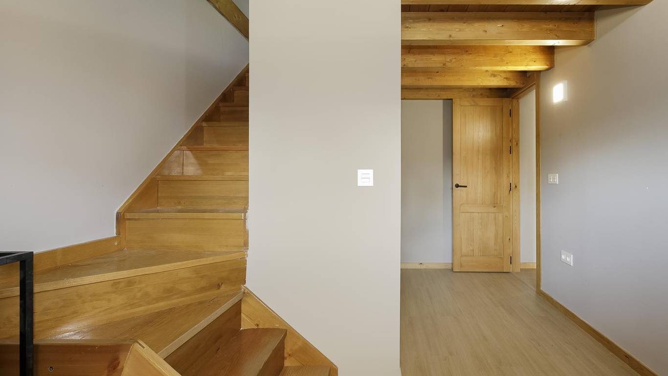 Estructura y forjados de madera laminada, suelo flotante y pavimentos laminados de alta resistencia.