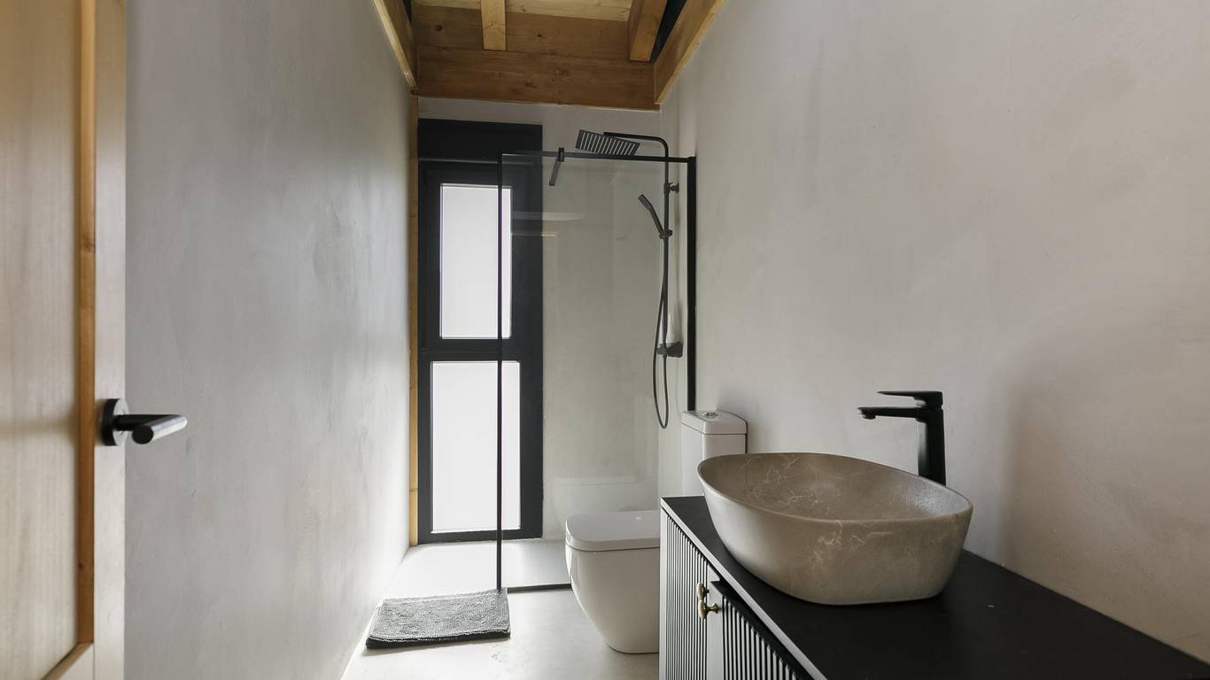 Baño exterior independiente, construido con los mismos materiales de alta calidad.