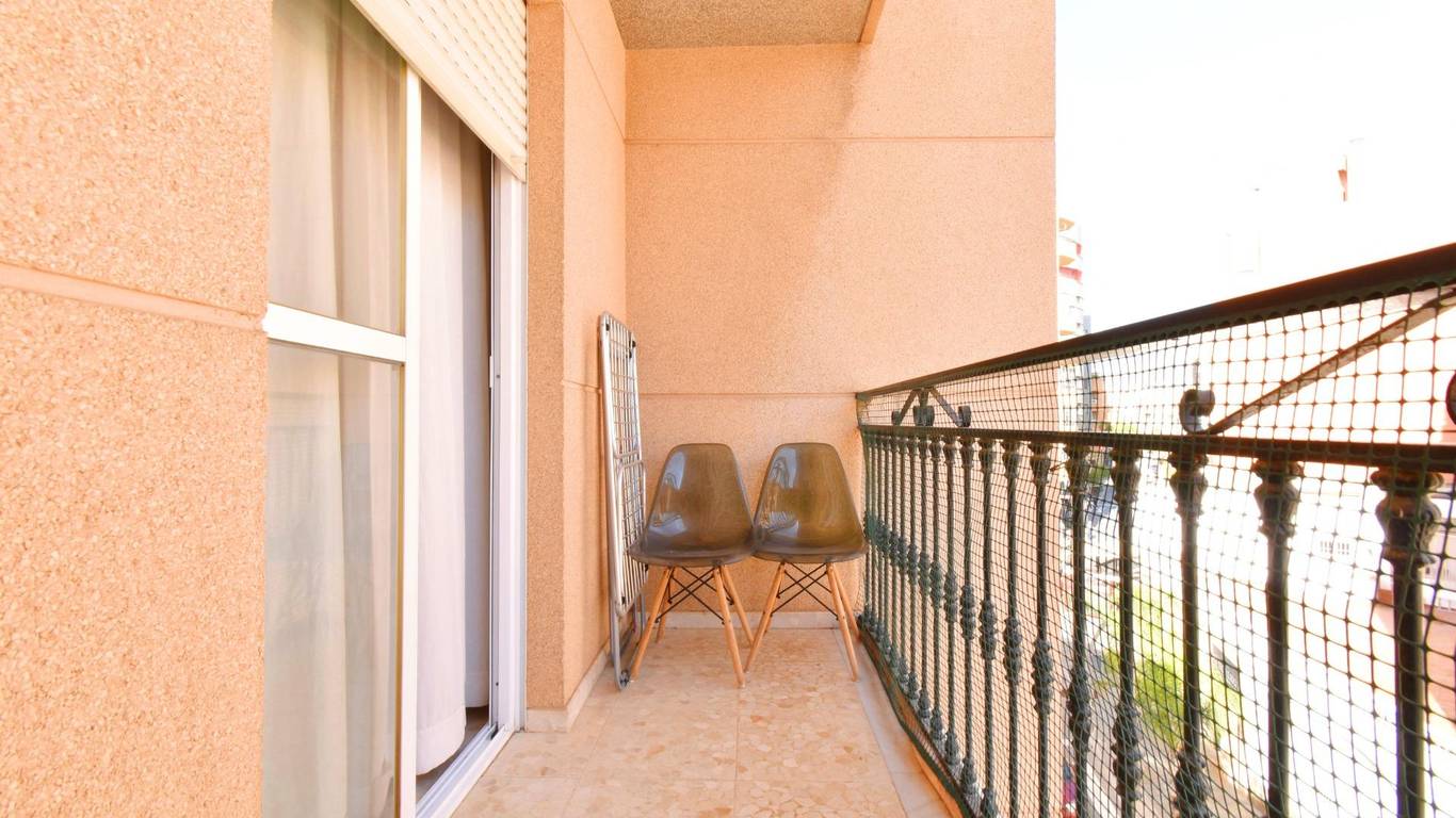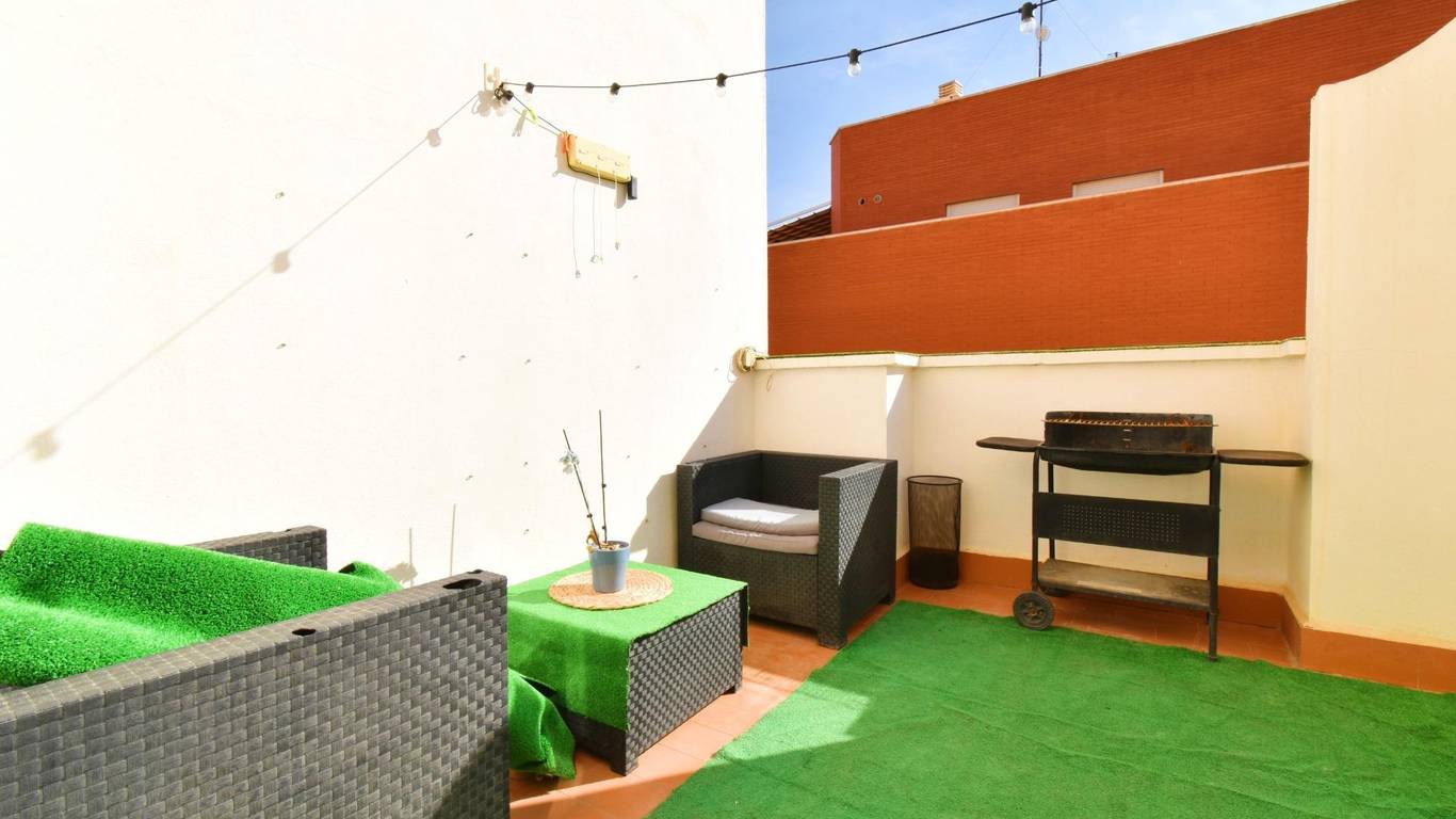 El piso tiene terraza, orientada al este, donde disfrutar del sol de la mañana, donde podrás poner una mesa para desayunar o cenar si te gusta hacerlo al aire libre.