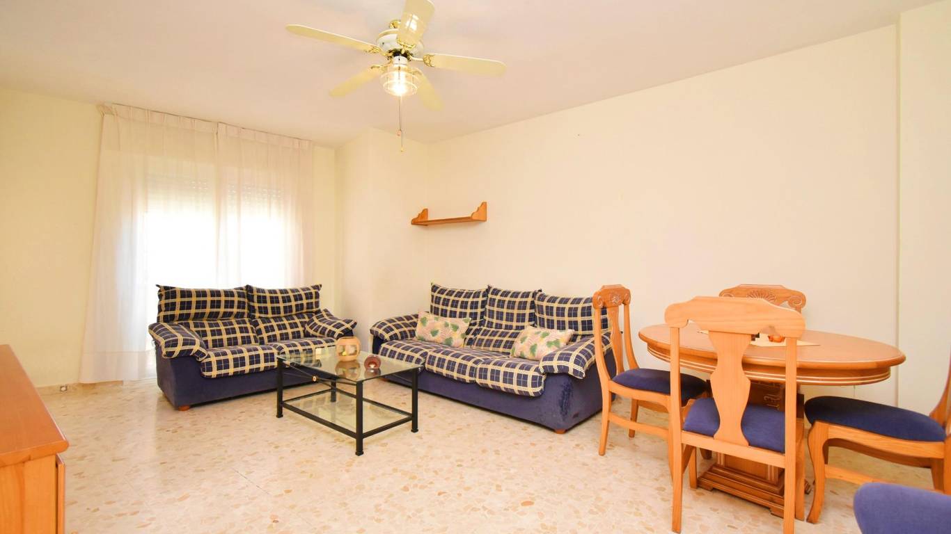 Amplio salón con terraza y tiene también un cuarto de baño con ventana.