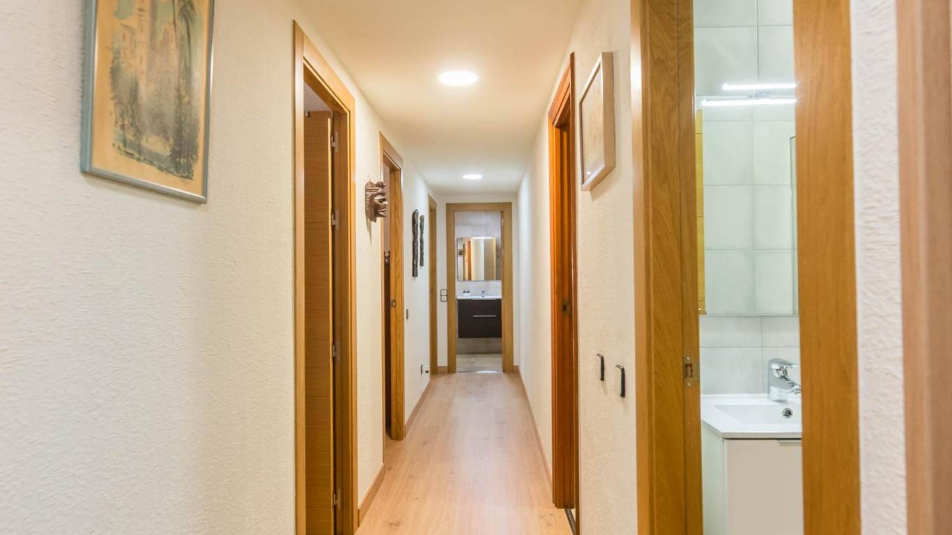 Distribución: amplio hall de entrada, salón-comedor muy luminoso con vistas despejadas al jardín frontal (espacio protegido sin posibilidad de edificación delante), cocina independiente con zona para comer, cuatro dormitorios dos de ellos con gran capacidad y dos baños completos. La plaza de garaje incluida facilita el día a día.