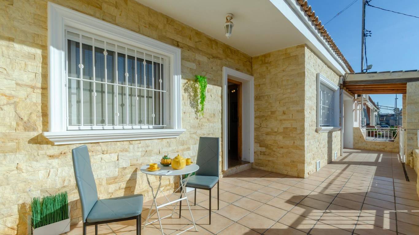 Calidades: Revestimiento de fachada con plaqueta escarfilada de mármol. Alarma. Solados de gres y de gres rústico antideslizante en exteriores. Carpintería interior en roble macizo, carpintería exterior en aluminio termolacado blanco con doble cristal, tipo climalit, mosquiteras integradas en ventanas y persianas de aluminio de lama fina. Alicatados de baños y cocina en primeras calidades, sanitarios Roca. Mecanismos eléctricos Simón. Armarios empotrados. Aire Acondicionado por split con bomba de calor en todas las habitaciones y en salón. Placas solares para el uso de agua sanitaria. Sistema de Osmósis inversa para el agua de uso alimentario. Cocina amueblada y equipada.