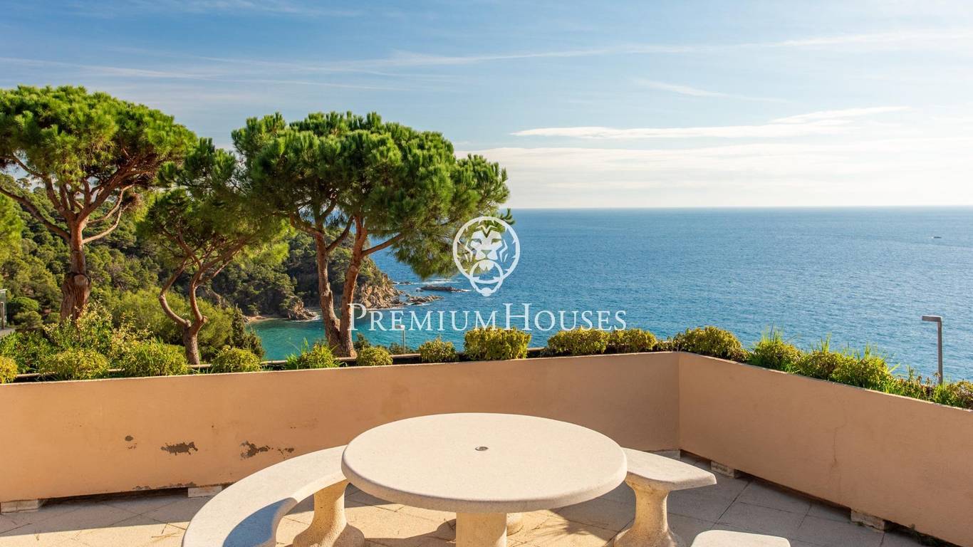 We present this extraordinary property located in the prestigious Cala Canyellas residential area, one of the most sought-after enclaves in Lloret de Mar. A villa that combines a privileged location, endless views of the Mediterranean and an incomparable sense of privacy and tranquillity, creating a true year-round sun paradise.Set on a large plot of 1,286 m, the house was built in 1996 by its current owner, designed with one clear priority: to capture the sea from every corner. Its functional layout and open spaces integrate the Mediterranean landscape naturally into everyday life.The house is mainly on one comfortable floor. Very bright spaces open onto the garden and are strategically oriented towards the impressive views. The layout is comfortable and functional. A practical entrance hall with a guest bathroom leads to the living room with large windows and an open kitchen with a bar counter, office area and large pantry with storage and appliances. On this same floor, the sleeping area has two en-suite bedrooms.Climbing just three steps leads to a separate flat with direct access from the garden, ideal for guests or family. On the top floor, there is another large suite with total privacy and spectacular views.The property also offers a two-car garage, laundry and ironing area, and covered street-level parking for two additional vehicles.A unique house with 180º panoramic sea views, privacy and tranquillity.Just a few metres from the beach, do not hesitate to contact us to visit one of the most impressive places on the Costa Brava.