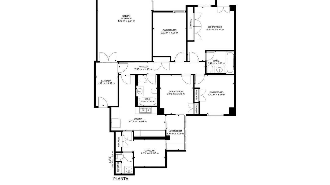 Al entrar a la vivienda encontramos un Hall distribuidor que da acceso por un lado al salón comedor con amplísima terraza con vistas despejadas, y también da acceso a la zona de dormitorios y cocina. En esta zona encontramos la cocina que tiene una zona de terraza tendedero y otra de dormitorio (actualmente es un office) de servicio y baño. También están en este mismo pasillo los 4 amplios dormitorios y los dos baños (uno de ellos en suite). esta zona cuenta con armarios empotrados en habitaciones y pasillos.