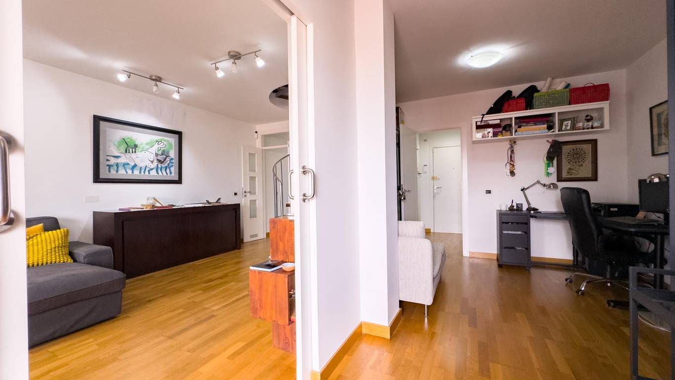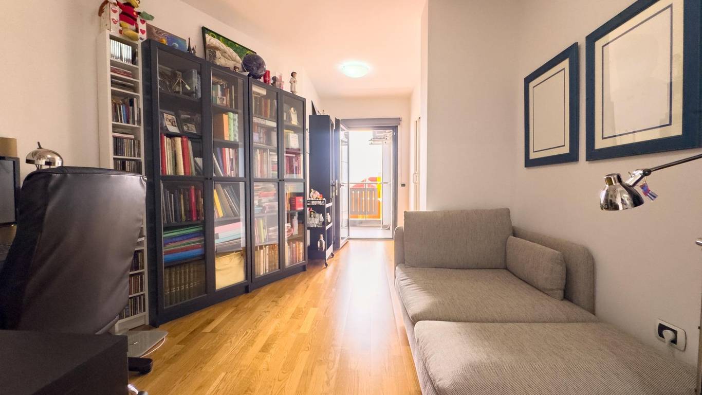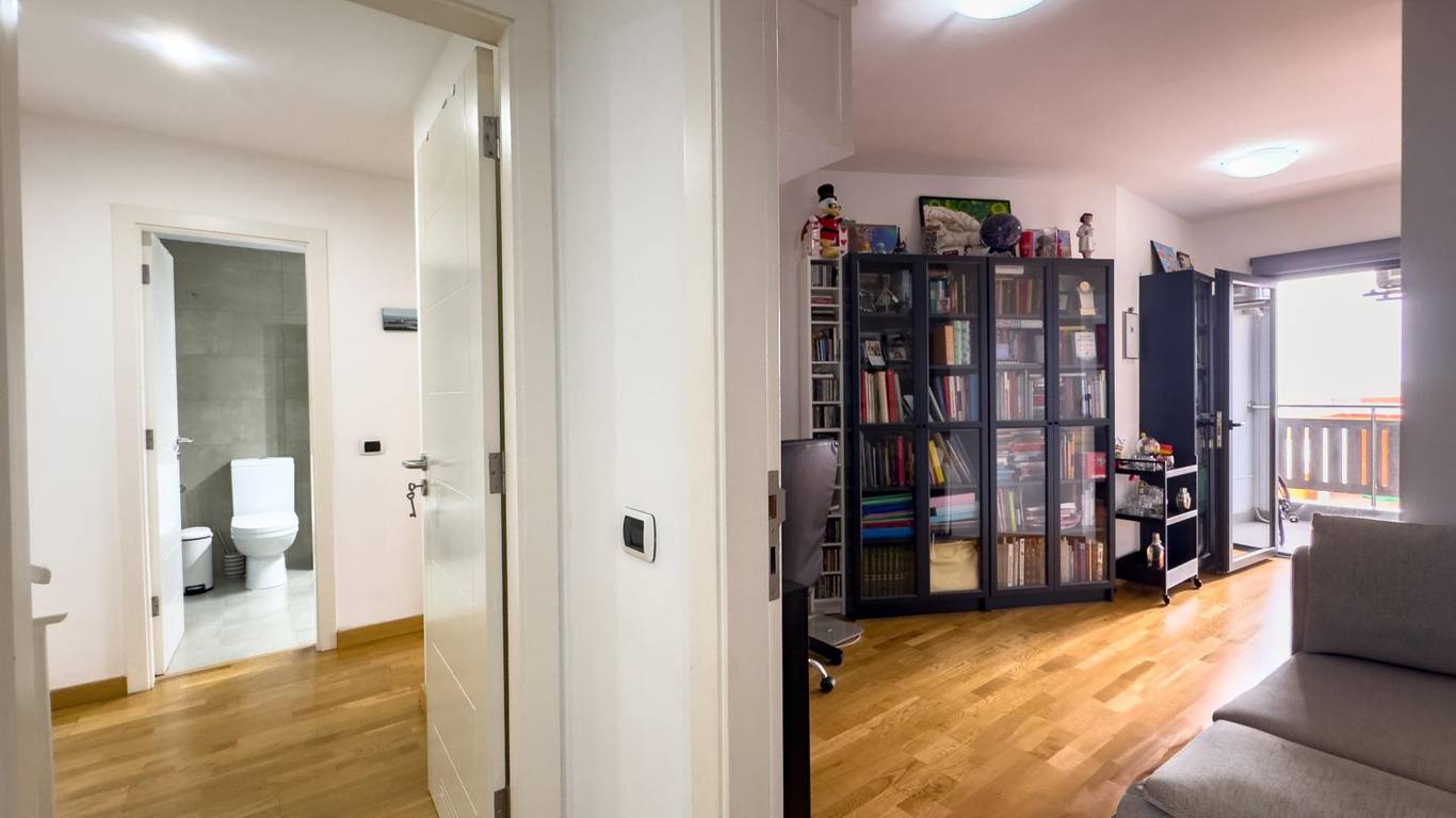 También al frente y como eje central del hogar, un despacho exterior con balcón se convierte en un pequeño lujo diario: desayunar bajo el sol, revisar proyectos con calma o simplemente tomar una pausa mirando la ciudad. Este despacho dialoga con un gran salón luminoso, un espacio para compartir, celebrar y sentir que la vida se disfruta mejor cuando hay metros de sobra.