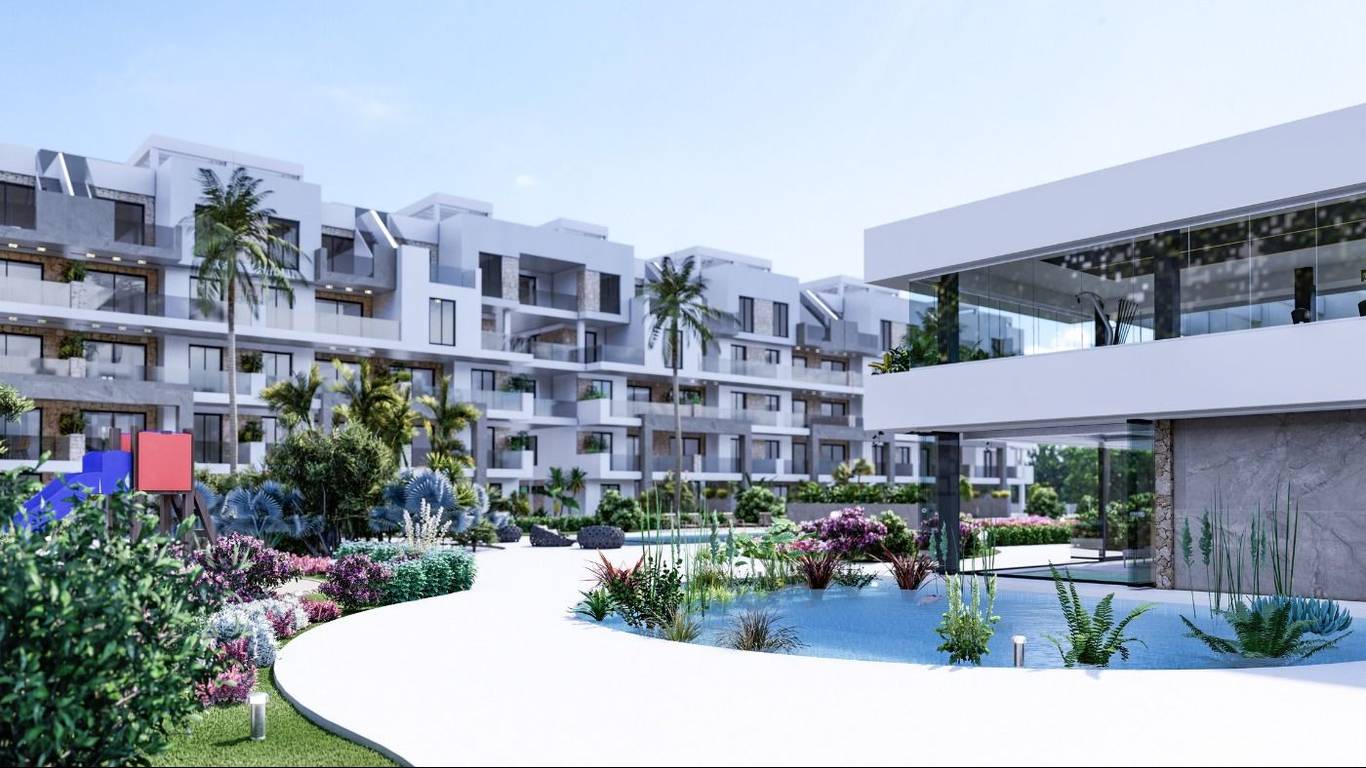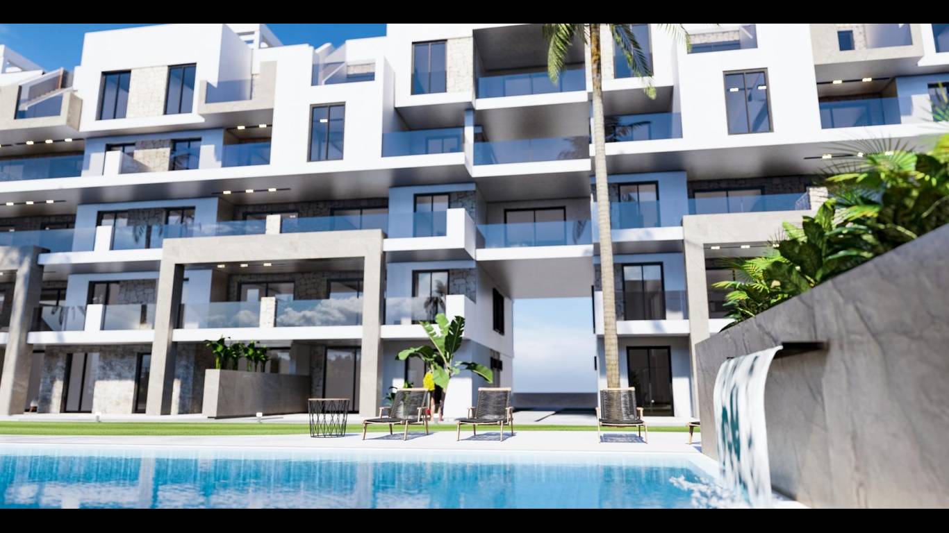 NEW BUILD RESIDENTIAL IN EL RASO, GUARDAMAR DEL SEGURANew Build private residential complex of apartments in El Raso, Guardamar del Segura. Complex consisting of 135 homes with 2 or 3 bedrooms in blocks of 3 or 5 floors plus solarium, designed in a minimalist way and with high quality standards, its modern architecture harmonises with our large open spaces, nature and swimming pools, offering a unique and peaceful atmosphere. Beautiful residential complexes, including a glassed-in GYM-Spa area with views of green areas, swimming pools and from its terrace overlooking the salt lagoon of La Mata, paddle tennis court, etc. Furniture pack included in the price.Parking space included in the price.Development is located on a unique and unrepeatable plot, bordering the natural landscape of the salt lagoon, enjoy its biodiversity and unique environment, in El Raso de Guardamar del Segura, with all kinds of services and amenities and close to the best beaches of the Mediterranean. At the same time, thanks to the proximity of El Moncayo beach, you will be able to go for a bike ride and enjoy the best climate of the Costa Blanca. Additionally and thanks to the five levels of some of the blocks that make up the residential, all of them facing south, we include in our luxury penthouses, fully equipped kitchen on the solarium, outdoor shower (hot/cold water), and jacuzzi area, to complete the unique experience of living in front of a unique and unrepeatable natural environment. El Raso is a part of Guardamar del Segura.Guardamar del Segura is a town located on the Costa Blanca South. With its 11 kilometres of natural beach and its large pine forest.Guardamar del Segura has a large port with activities throughout the year, it has a large sports centre with paddle tennis, tennis, soccer and a large heated swimming pool that works all year round. It also has a library where there is free wifi and computers.Guardamar del Segura is only 20km away from the Alicante - Elche (El Altet) airport, where there are many flights every day with connections to the main European cities, due to the demand for tourists on the Costa Blanca.