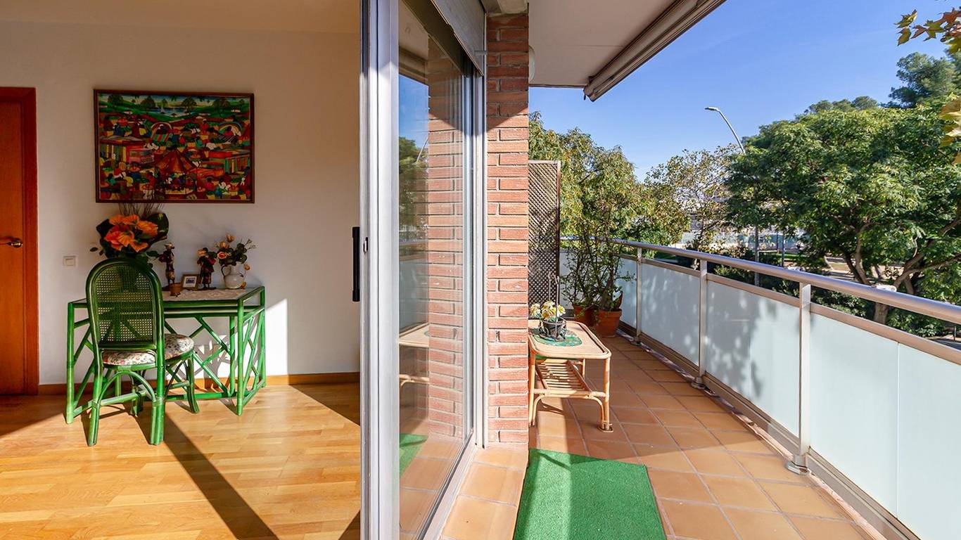 El salón comedor es amplio, agradable y perfectamente orientado hacia el exterior, con grandes ventanales que dan acceso directo al balcón principal, ideal para disfrutar del aire libre, del sol y de las vistas abiertas al parque Los balcones rodean prácticamente toda la vivienda, ofreciendo continuidad visual y una conexión natural entre los distintos ambientes
