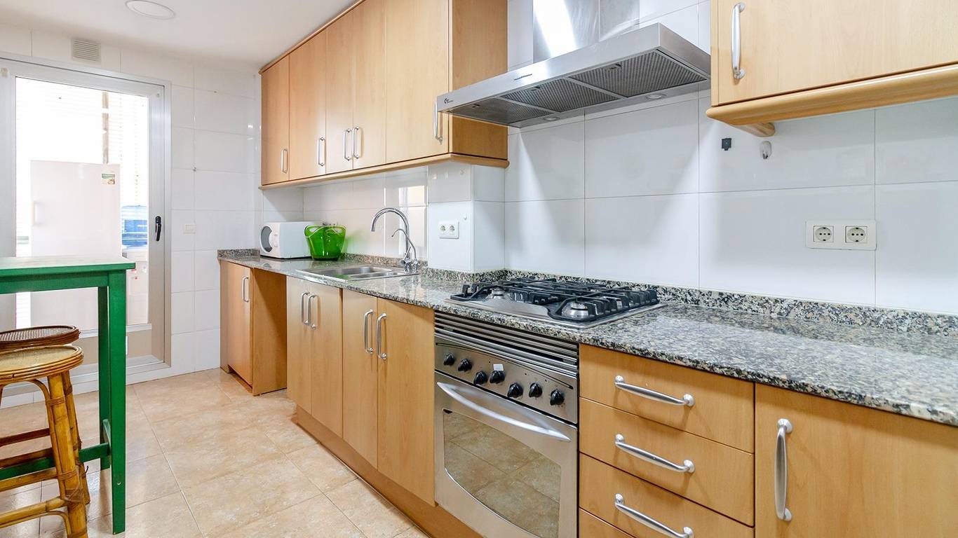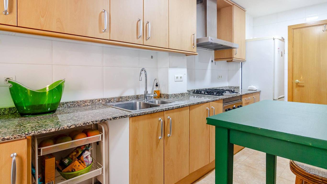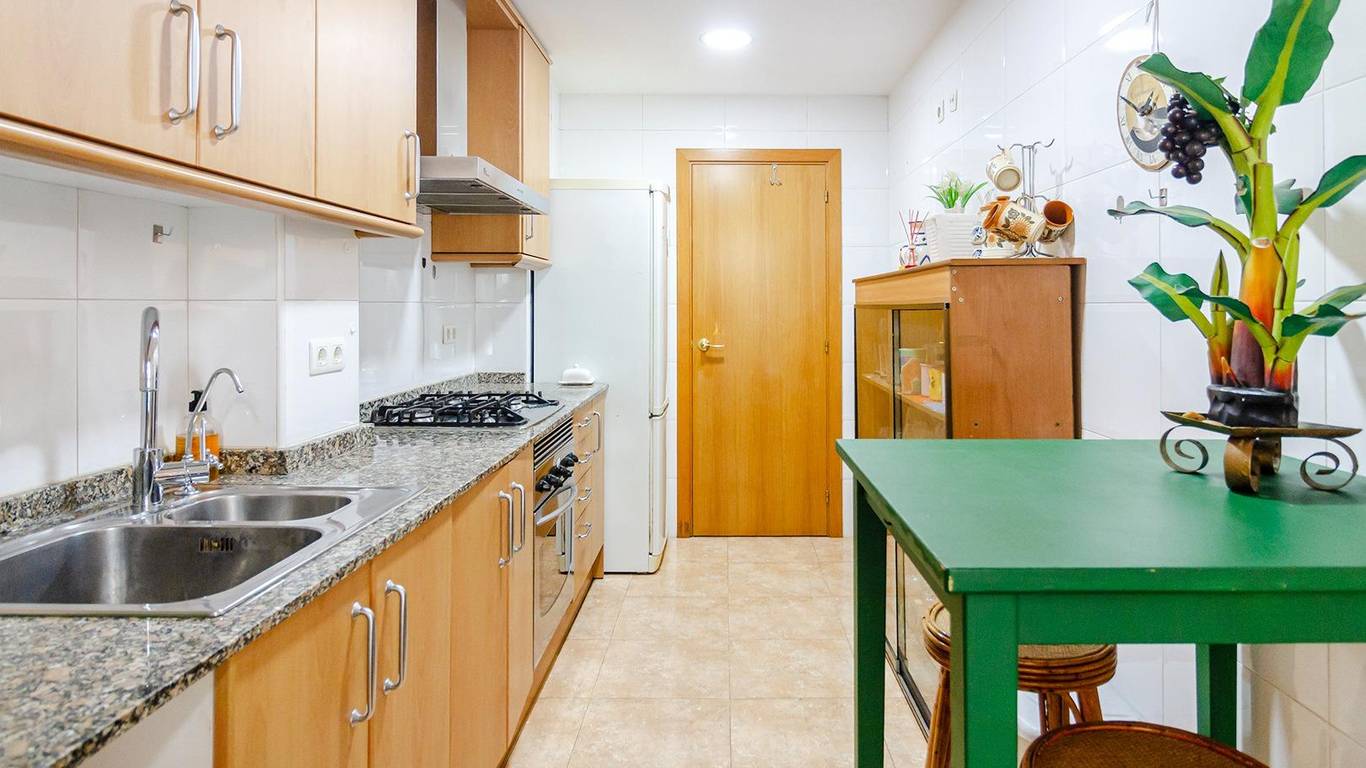 Cuenta con dos baños completos en excelente estado, uno de ellos en suite, equipados con materiales de buena calidad y con detalles funcionales que aportan comodidad al uso cotidiano La cocina es independiente, de estilo moderno y práctico, con muebles altos y bajos que optimizan el espacio de almacenamiento y un lavadero exterior descubierto que permite ventilación y luminosidad permanente