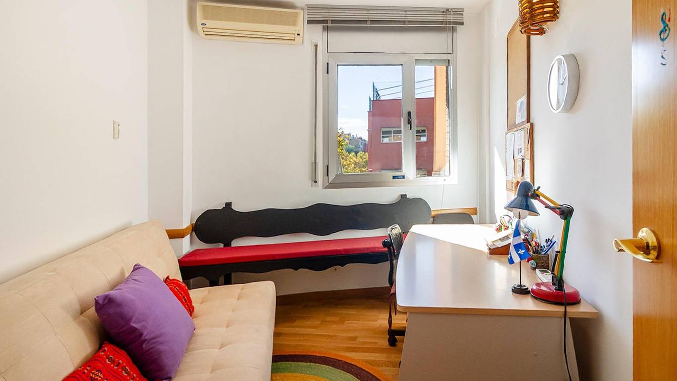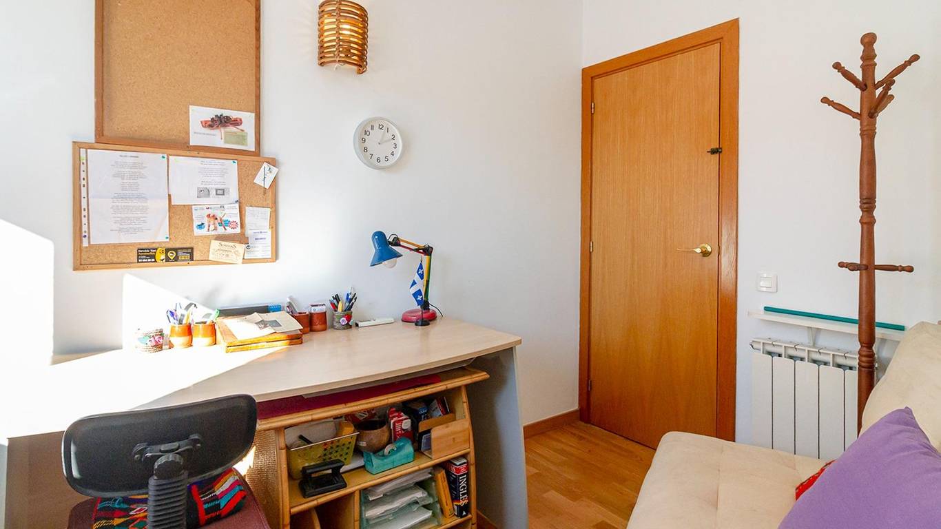 Dispone de cuatro habitaciones, dos de ellas dobles y dos individuales, que se adaptan fácilmente a las necesidades de cada familia, ya sea como dormitorios, área de trabajo, despacho o espacio de juegos La habitación principal destaca por su tamaño, su luz natural y su salida directa al balcón con vista al parque, generando un ambiente de descanso cálido y silencioso