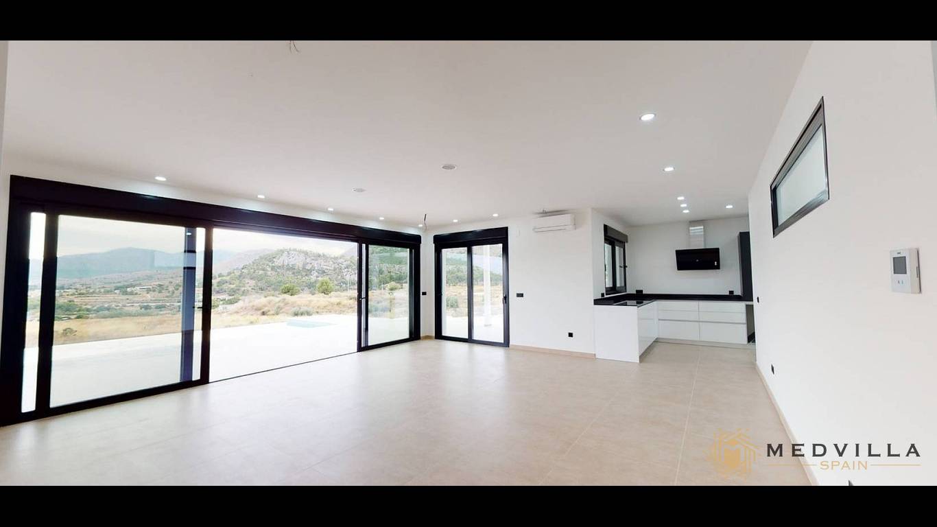 Située dans un cadre privilégié, cette villa nouvellement construite se dresse en position élevée et offre une vue spectaculaire sur les montagnes qui entourent la charmante ville de Pinoso. À seulement quelques minutes en voiture, Pinoso vous accueille avec tous les services nécessaires à la vie quotidienne : supermarchés, restaurants, écoles, installations sportives, centre de santé et une atmosphère locale animée.