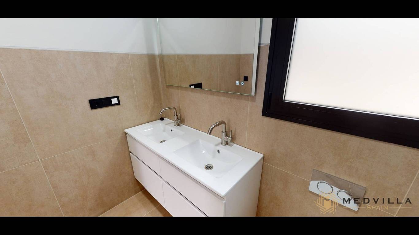 La villa dispose de 3 chambres lumineuses, dont une suite parentale avec salle de bains privative, conçue pour offrir confort et intimité. Les deux salles de bains complètes sont finies avec des matériaux de haute qualité, ajoutant une touche d’élégance à chaque détail.