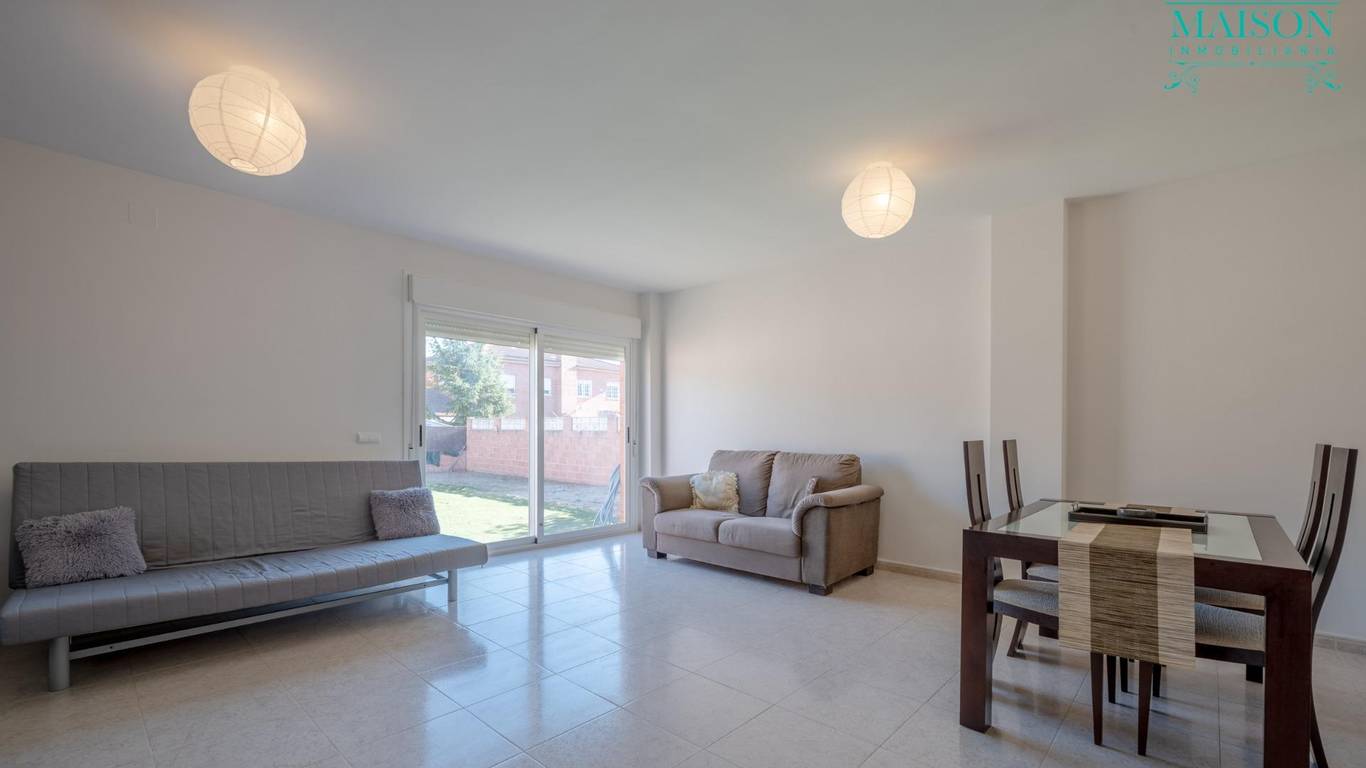 En la planta principal encontramos la cocina amueblada la cual tiene acceso al garaje, y éste a su vez con acceso al jardín, el salón, también con salida al jardín y un aseo.