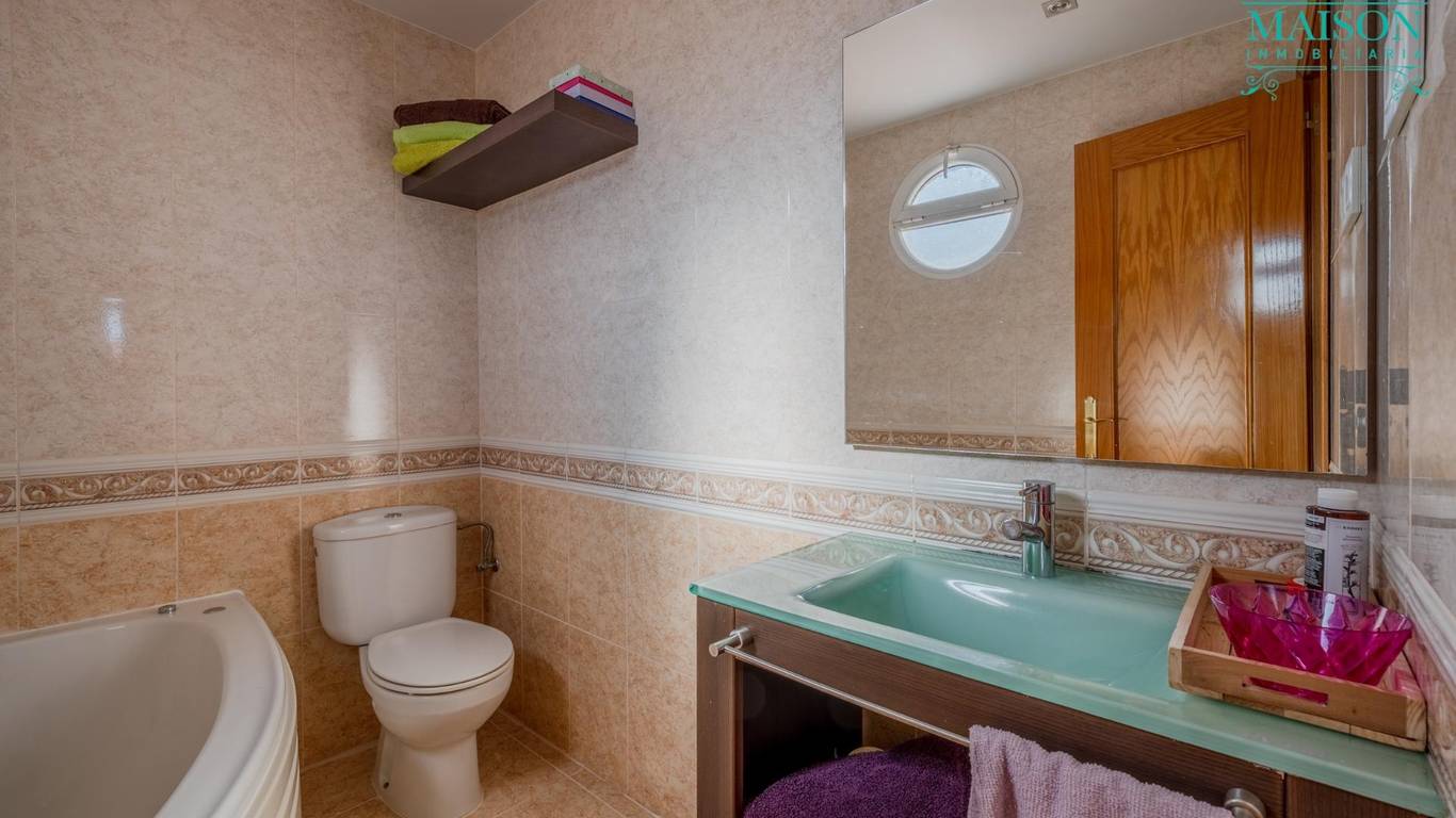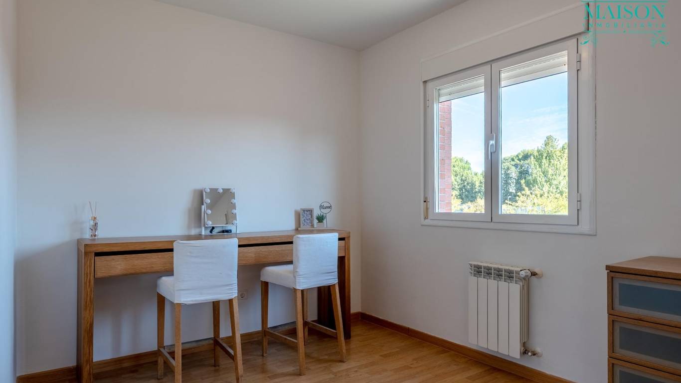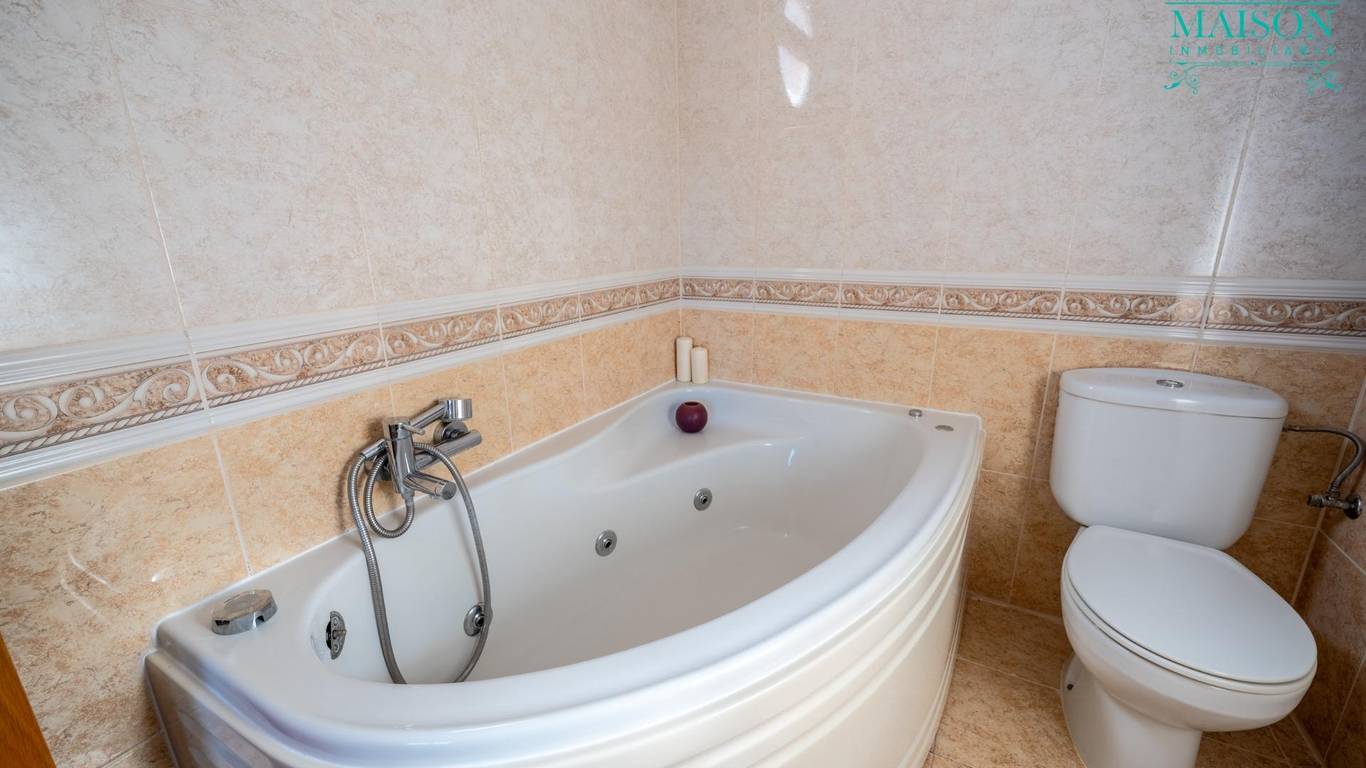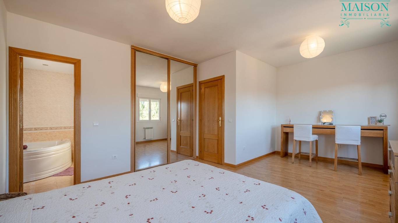 Este chalet pareado tiene armarios empotrados, techos altos, pintura lisa, ventanas correderas climalit, suelos de tarima y gres, puertas de roble macizo, cabina de hidromasaje en el baño de la planta primera y bañera de hidromasaje en baño suite, calefacción de propano con depósito comunitario, etc.