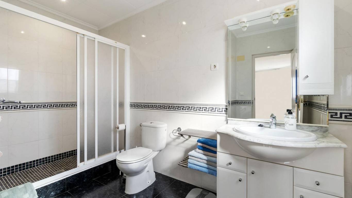 Banks, ATMs: CAM - 630m; Banco Sabadell - 1000m; Deutsche Bank - 1030m Supermarkets: Mercadona - 390m; Supermercado Elena - 510m; Carrefour - 3170m; Habaneras - 3310m Shops, pharmacies: Merca China - 530m; Age Concern - 760m; San Luis Garden - 820m; Farmacia La Siesta - 940m; Panadería Alemana - 960m; Kiosco La Siesta - 960m Cafes, restaurants: Churchills - 100m; Elviras - 100m; Hoggies - 120m; Bar Washington - 520m; George´s Bar - 530m; The watering hole - 610m Bus stops: San Luis - 550m; Centro Comercial San Remo - 1000m Education: Active in English Academia - 2020m; Colegio Público Las Culturas - 2070m; Instituto de Enseñanza Secundaria nº5 - 2140m; Sección del Instituto de Educación Secundaria Torrevigía - 2270m; Instituto de Educación Secundaria Mare Nostrum - 2740m