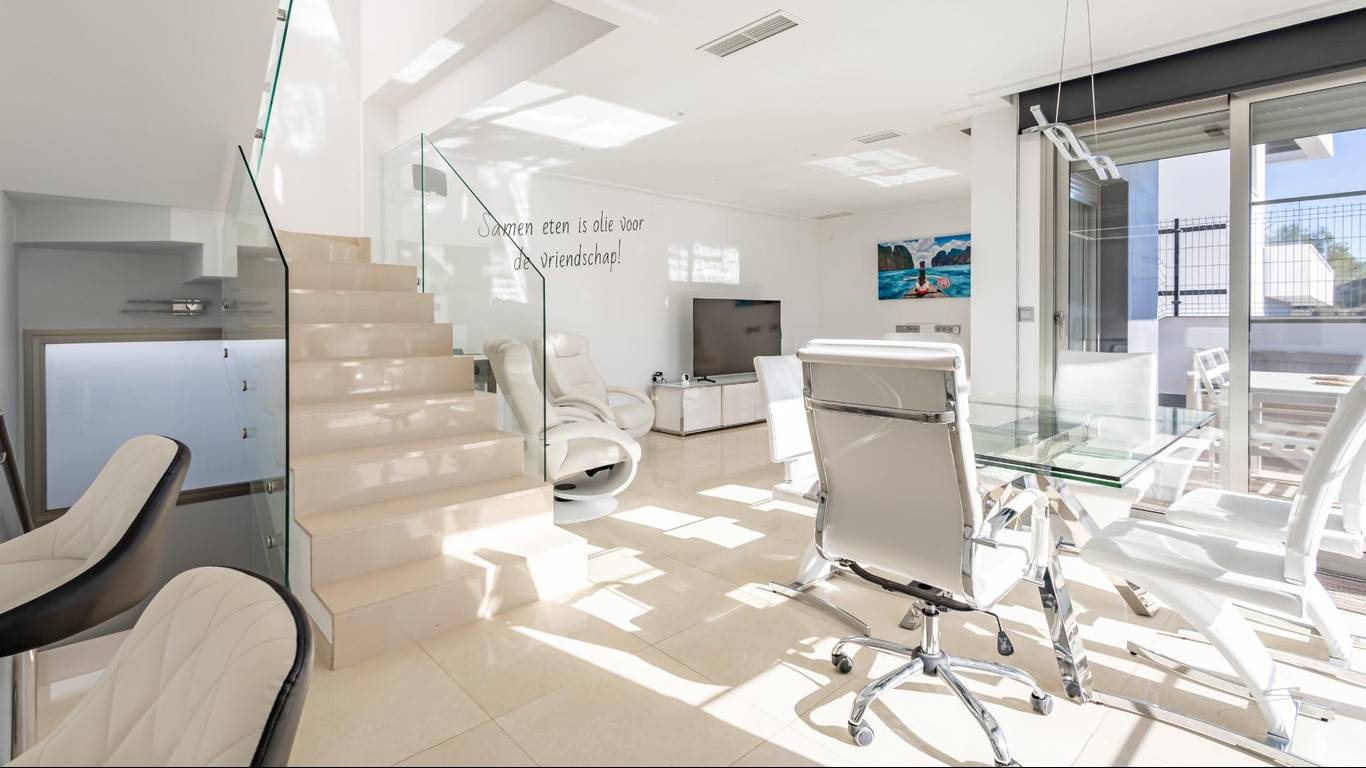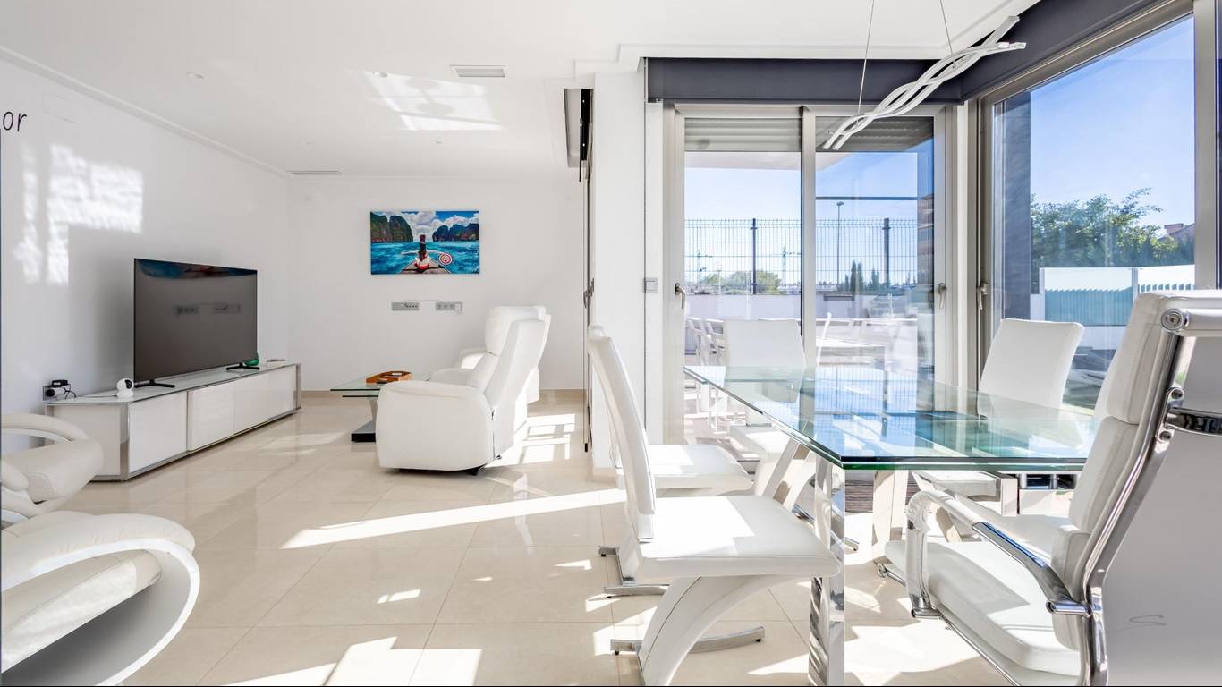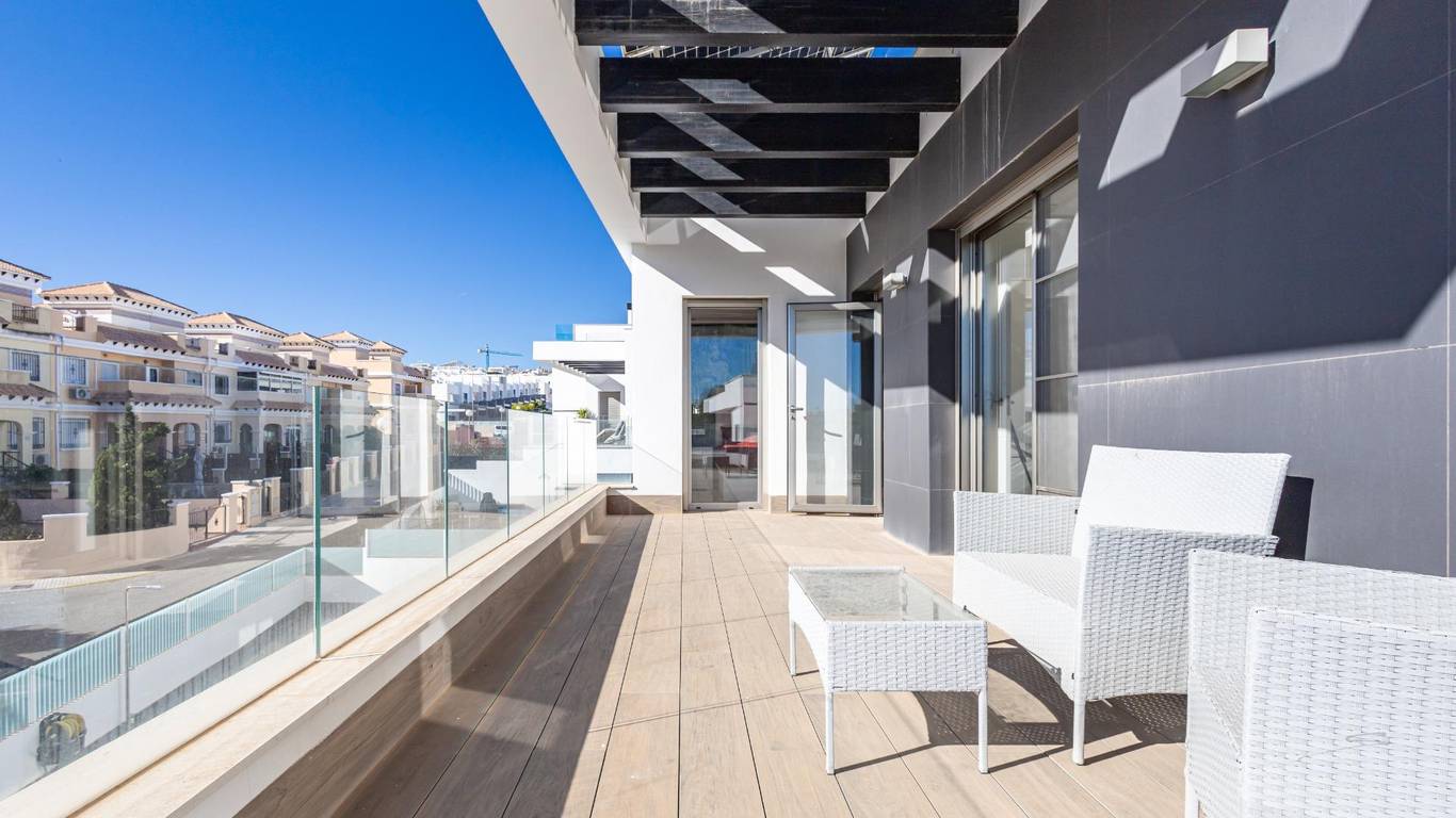 Welcome to this spectacular independent and fully energy-self-sufficient villa in Orihuela Costa, located just 4 km from the beaches and very close to the renowned La Zenia Boulevard shopping centre. Built in 2019 and practically unused, you will have the privilege of enjoying a home that is almost brand new and lacks absolutely nothing. Upon arrival, you are greeted by an electric entrance gate with video intercom, offering comfort and security from the moment you enter. You can park your car inside the plot and enjoy a fully paved garden that includes two cosy artificial grass areas perfect for sunbathing. The private pool, featuring an elegant waterfall, allows you to cool off during the hottest summer days, while the perimeter fencing combines iron and tempered glass for a modern and exclusive touch.The villa also features a fully equipped outdoor kitchen, ideal for enjoying the Mediterranean climate almost all year round. Stepping inside, you will notice the solid entrance door, which ensures maximum security for your home and family. The living room and kitchen stand out for their impressive natural light, creating spacious, comfortable and inviting areas. All windows have mosquito screens, and the living room includes a pellet stove that provides warmth during the winter months. The interior kitchen has a modern style with clean lines and ample storage capacity, equipped with an oven, microwave, dishwasher and a large American-style refrigerator. On this same floor there is a guest toilet that also houses the washer-dryer and water heater.Descending to the semi-basement, you will find a large space currently set up with a bar for preparing cocktails, though it can be adapted for any use according to your needs. This level includes two very spacious bedrooms, each with its own private bathroom, as well as a small storage room. The floor benefits from excellent insulation thanks to a one-metre-wide chamber surrounding the entire semi-basement, also ideal for additional storage. On the upper floor, there are two more bedrooms, each with an en-suite bathroom, along with an area used as a wardrobe or storage space. Both bedrooms provide access to a large terrace of approximately 30 m, perfect for enjoying the sun and tranquillity.Finally, the solarium is equipped with solar panels that make this wonderful house completely energy-independent, thanks to a high-capacity photovoltaic installation with batteries. In summary, this villa offers modernity, quality, design and efficiency in a privileged Mediterranean setting. If you are looking for a move-in-ready home, equipped down to the last detail and designed for maximum comfort, look no further: this is your home.