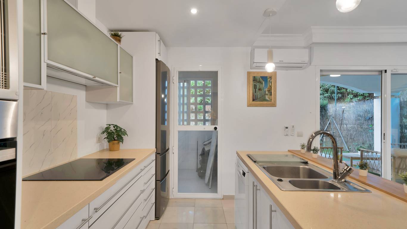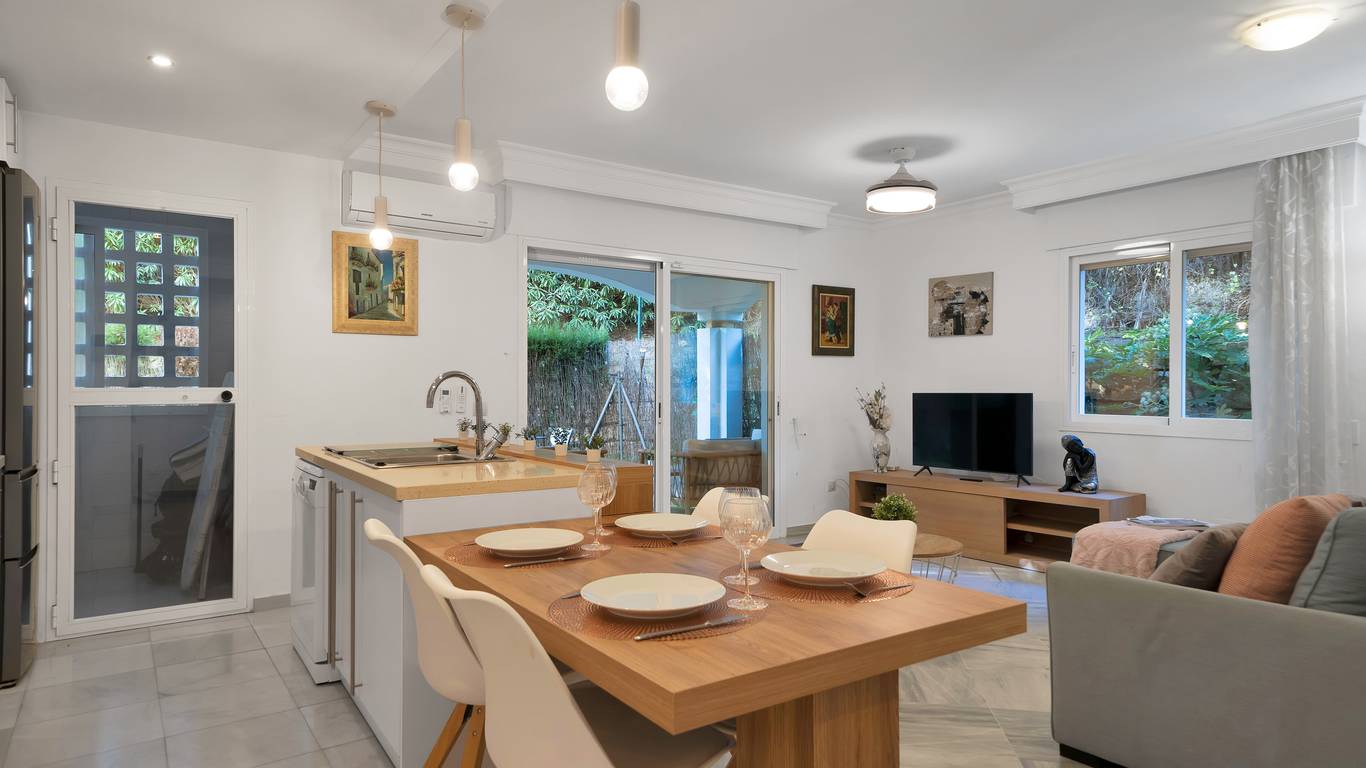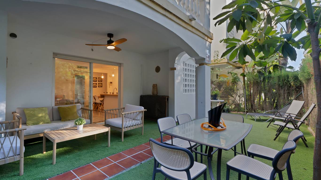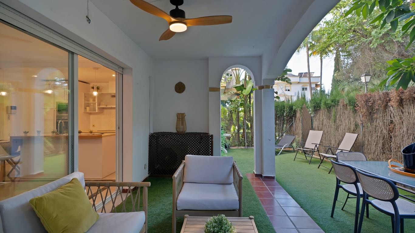 We present this beautiful property located in one of the most sought-after and prestigious areas of Marbella: the iconic Golden Mile, an enclave where luxury, comfort, and quality of life blend seamlessly.Just 800 meters from the beach, you can enjoy the Mediterranean with a pleasant 10-minute walk. The property is surrounded by all essential and high-end services: supermarkets, restaurants, national and international schools, institutes, pharmacies, bus stops, and the iconic Marbella Club and Puente Romano hotels. A privileged location that allows you to walk to the city centre and enjoy everyday life with total convenience.Connectivity is excellent: 5 minutes by car from Puerto Banús, the same distance from Marbellas town centre and Old Town, and with immediate access to the motorway. Málaga Airport is only 35 minutes away.The property is located within a gated community built in 2002 that offers security, well-maintained gardens, a communal pool, and a paddle courtmaking this home a gem for those seeking comfort, style, and quality.This west-facing ground-floor apartment is perfect for enjoying the afternoon sun and features a charming 20 m porch and private garden, providing privacy and a cosy atmosphere.The total built area of 117 m is distributed as follows:Spacious living-dining room filled with natural lightModern open-plan kitchen, completely renovated in 20232 bedrooms and 2 full bathroomsPrivate garden, ideal for relaxing or entertaining guestsAdditionally, it includes an underground parking space with direct access to the apartment via a lift, offering maximum convenience. The property is equipped with air conditioning, heating, and is adapted for people with reduced mobility.A unique opportunity thanks to its PREMIUM location on the Golden Mile. Perfect as an investment, holiday home, or permanent residence. High rental profitability due to strong demand in the area throughout the year. Ideal for those seeking to elevate their quality of life or invest in one of the most promising areas of the Costa del Sol.A property with Mediterranean charm, where modern comfort meets the exclusivity of Marbella.The abbreviated information document is available. Expenses: Taxes (ITP or VATAJD) Notary and Land Registry fees.BRF