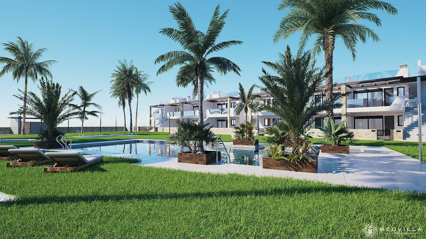 A small-scale development with a swimming pool, children's pool, and fitness center. Located in Pilar de la Horadada, it features a charming town center with shops and restaurants, and excellent connections to golf courses and airports.