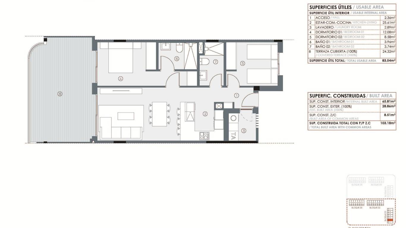 Bedrooms: 2, Bathrooms: 2 Total area: 65 m2 Living area: 59 m2
