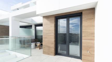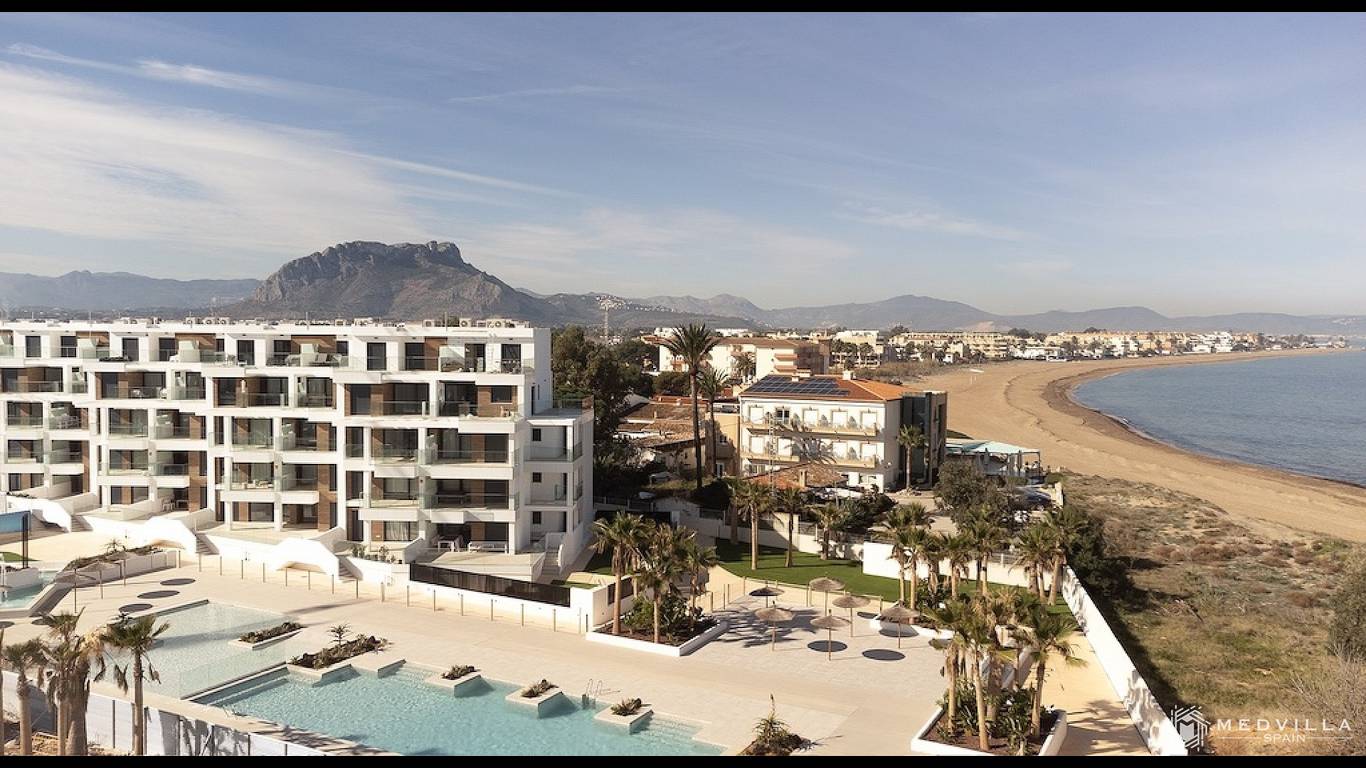 Modern frontline sea apartments with terrace or penthouse, 2 or 3 bedrooms and a communal pool in Denia.