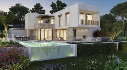 Ibiza Style Luxury Villa with Panoramic Views in Las Laderas, JaveaExclusive Contemporary Villa Surrounded by NatureThis exceptional Ibiza style villa in Las Laderas, Javea, offers a perfect blend of Mediterranean charm and modern comfort. Located in one of the most desirable residential areas on the Costa Blanca North, the property sits close to the Granadella Natural Park, providing stunning landscapes, privacy and an unbeatable quality of life. The urbanization features modern infrastructure such as sewer systems, underground wiring and newly built homes, making it an ideal place for families and investors.Spacious Interior with Mediterranean EleganceDistributed across two levels, the villa welcomes you with a bright and spacious living dining room featuring large windows that open to breathtaking views. The open plan kitchen is modern, functional and ideal for daily living or entertaining. The ground floor also includes a guest toilet and a practical utility room.On the upper level you will find four double bedrooms and three full bathrooms, including a beautiful master suite with panoramic windows overlooking the natural surroundings. High ceilings, built in wardrobes and quality finishes ensure comfort and style throughout the home.Outdoor Living with Infinity Pool and TerracesDesigned for the Mediterranean lifestyle, the exterior areas offer multiple sunny and shaded terraces perfect for dining, relaxing or enjoying the views. The infinity pool with outdoor shower blends seamlessly into the landscape, while the landscaped garden enhances the villa's tranquillity and natural beauty.High End Features for Maximum ComfortThe villa is equipped with underfloor heating, ducted air conditioning, double glazed aluminium windows, external shutters in bedrooms, an alarm system, intercom and premium insulation. Buyers also have the opportunity to customize finishes and layout based on their preferences.Prime Location in JaveaJavea is renowned for its sandy beaches, coves, marinas, golf courses and exceptional gastronomy. The property is conveniently located close to international schools, restaurants and services.Key distances:El Arenal Beach 3.5 kmJavea Port and Marina 7 kmJavea Golf Club 2 kmAlicante Airport 100 kmValencia Airport 125 kmYour Mediterranean Lifestyle Starts HereWhether for permanent living, a holiday residence or an investment, this villa offers luxury, comfort and an exclusive setting. Contact us today for more details or to arrange a viewing.