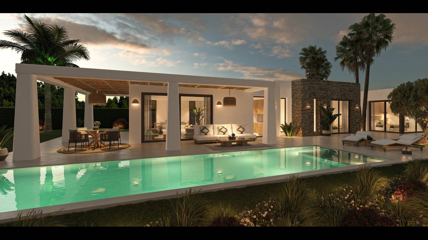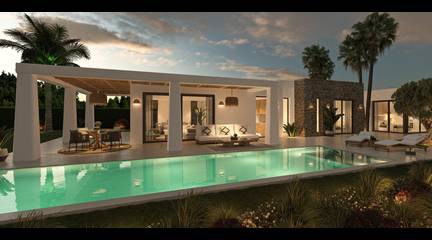 Ibiza Style New Build Villa under construction in JaveaContemporary Mediterranean Living Near El Arenal BeachThis Ibiza style new build villa in Javea is currently under construction with a short delivery time. Located just 3 km from El Arenal Beach, one of the most popular and vibrant areas of the Costa Blanca North, this property blends Mediterranean charm with modern elegance. Javea is renowned for its crystal clear coves, natural parks, marinas, traditional gastronomy and relaxed coastal lifestyle, making it an exceptional place to live or invest.Elegant Architecture Inspired by Ibiza and the MediterraneanThe villa stands out with its white façade, rounded corners and hand carved Montgó stone accents that add warmth and authenticity. High quality finishes such as microcement flooring, double glazed aluminium windows in rust colours and black taps in the bathrooms contribute to a refined and contemporary atmosphere. All bedrooms are equipped with electric exterior blinds to ensure comfort and privacy.Spacious Interiors Designed for ComfortInside, the villa offers a bright and spacious living dining area with direct access to the outdoor terraces and south facing swimming pool, allowing you to enjoy sunlight throughout the day. The modern open plan kitchen comes fully equipped and is complemented by an adjoining laundry room and a guest toilet.The sleeping area includes three double bedrooms, each with its own en suite bathroom. The master suite features a dressing room for added convenience and style.Additional Independent Apartment and Outdoor LivingOn the lower floor, the villa includes a separate 37 m apartment with a bedroom and a bathroom, ideal for guests or extended family. The outdoor areas are designed for year round living, featuring large sunny terraces, mountain views and two covered parking spaces under a stylish pergola.The villa is equipped with underfloor heating and ducted air conditioning, ensuring maximum comfort in all seasons. From the property you can admire the surrounding green mountains and the iconic Montgó Mountain, one of Javeas most recognisable landmarks.Prime Location in JaveaKey distances from the villa:El Arenal Beach 3 kmJavea Port and Marina 7 kmJavea Golf Club 3 kmAlicante Airport 100 kmValencia Airport 125 kmYour Mediterranean Home AwaitsThis villa is the perfect choice for those seeking a luxury residence, a holiday home or a secure investment on the Costa Blanca. Contact us today to arrange a visit and discover this exceptional property in Javea.