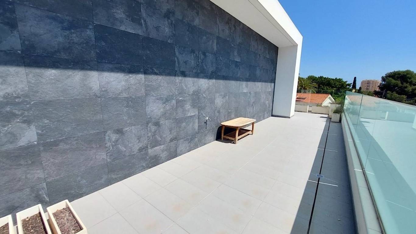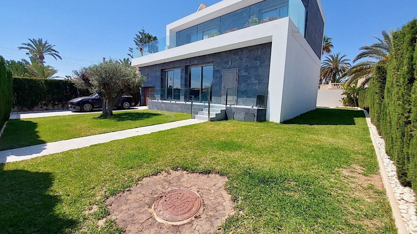 Luxury villa of 250 square meters built and with a plot of 600 square meters with a saltwater pool. The property consists of two floors, on the first floor you will find a large living / dining room with kitchen. A bedroom with en-suite bathroom and a toilet. Going up The double-glazed designer staircase leads to the second floor where there are two large bedrooms and a full bathroom with Jacuzzi to share located between the two bedrooms with access to it. It also has access to the large terrace that borders the house on two sides from which you have sea views. It has a barbecue area, garage for two vehicles, central heating with underfloor heating throughout the house, 6 solar panels, air conditioning, balcony overlooking the pool. The property It is located in one of the areas closest to the center and exit for Alicante - Murcia and quiet to live all year round. The nearest beach is Los Locos and is about a 10-minute walk away. You have nearby supermarkets, bars, / restaurants, beaches, health center and the center of Torrevieja is only 15/20 minutes walking. In the same urbanization ( Los Angeles ) there is a place where you will find a restaurant , a bar ( where they do karaoke , music etc ) They also have a swimming pool , sauna , paddle tennis courts , soccer and a gym