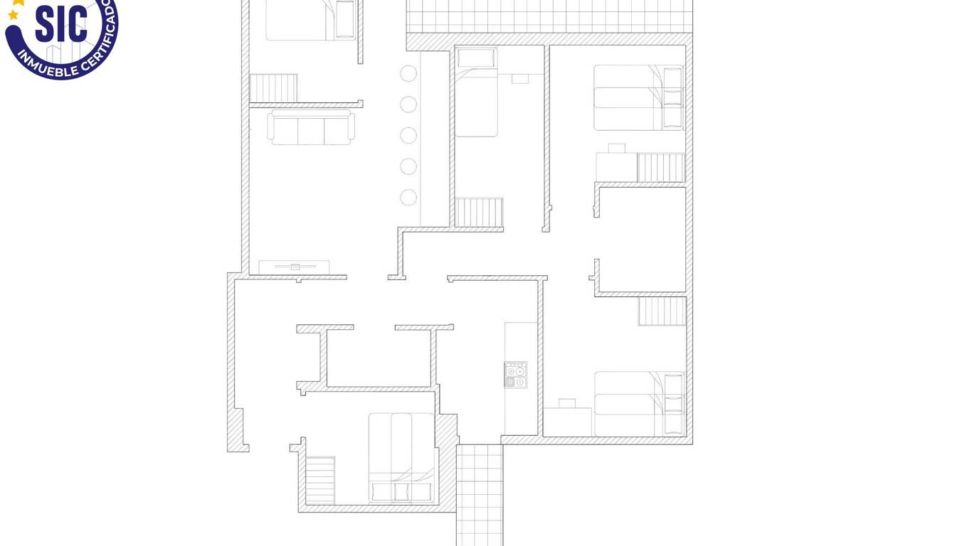 It stands out for its spaciousness and superb layout, ideal for both residential use and investment. The flat features 5 bedrooms, 2 full bathrooms, a bright living room with access to the balcony, an independent kitchen, and a utility room. Its front-facing orientation ensures excellent natural light, creating pleasant and functional spaces.