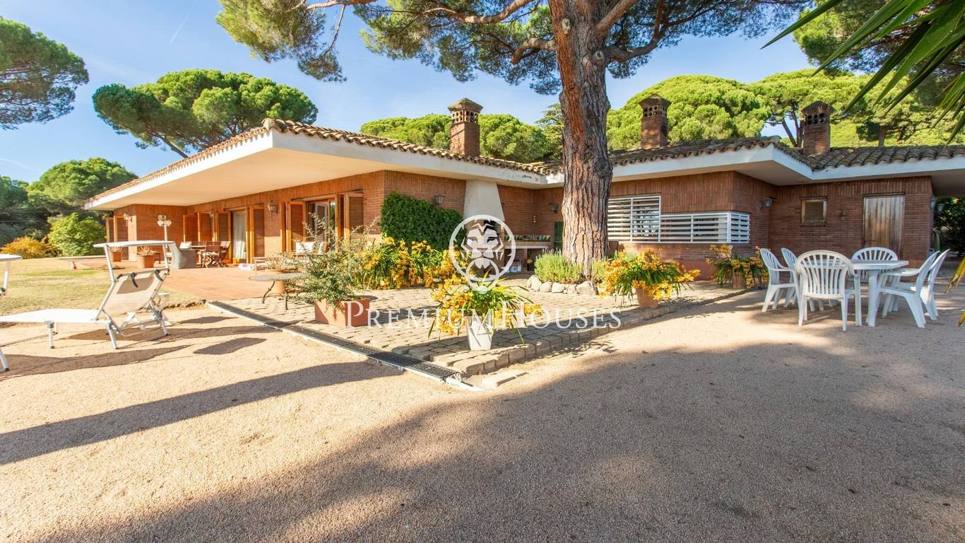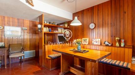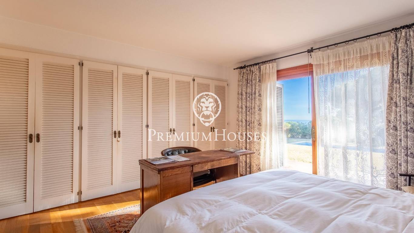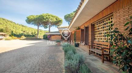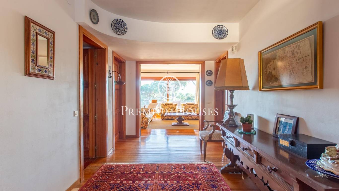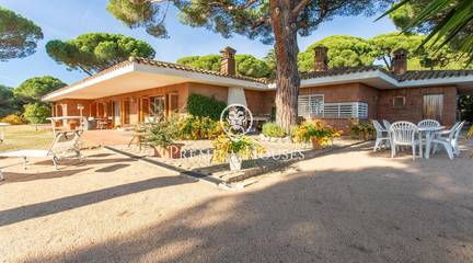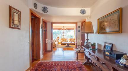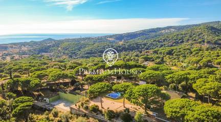 In Sant Andreu de Llavaneres, one of the most exclusive towns in the Maresme region, renowned for its elite residential developments and privileged residential environment, you will find this magnificent single-storey property with stunning sea views.It is a Mediterranean-style family home, built in exposed brick and located on a 4,623 m plot, guaranteeing tranquillity, privacy and a unique natural environment. The house has a floor area of 495 m, with a very practical layout and large windows that flood the spaces with natural light.The living area is organised around a spacious entrance hall leading to an elegant living room with a fireplace and a dining room divided into two areas, both with spectacular sea views and direct access to a charming porch and the garden. The generously sized kitchen includes a breakfast area with a fireplace, a pantry, a service area with access to the outside, an additional room and a guest toilet.The night area offers a master suite with sea views, access to the garden, a dressing room and a full bathroom, as well as a hallway leading to four additional bedrooms and a full bathroom. All rooms have large fitted wardrobes and parquet flooring.The property has gas heating, automatic irrigation, a water tank, and a large outdoor area with a swimming pool. Although it is a second-hand property that may require some updating, its potential is extraordinary due to its location, layout, and size.The property also includes a closed garage and an outdoor pergola with space for seven cars.