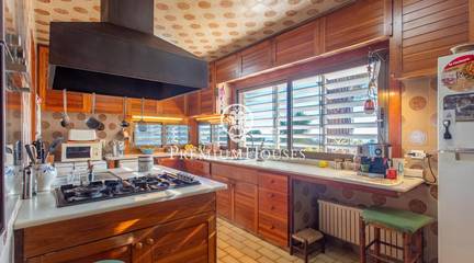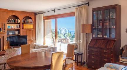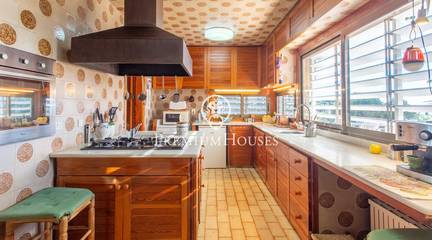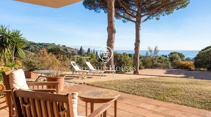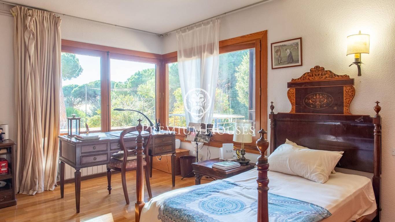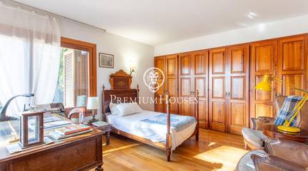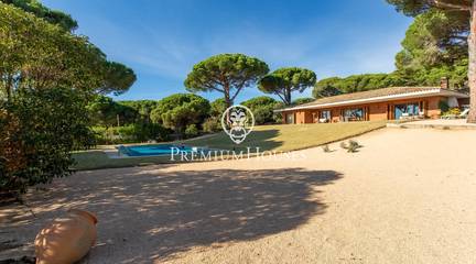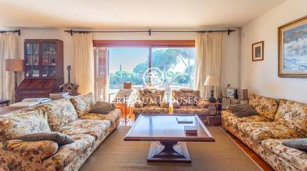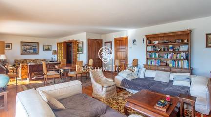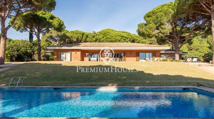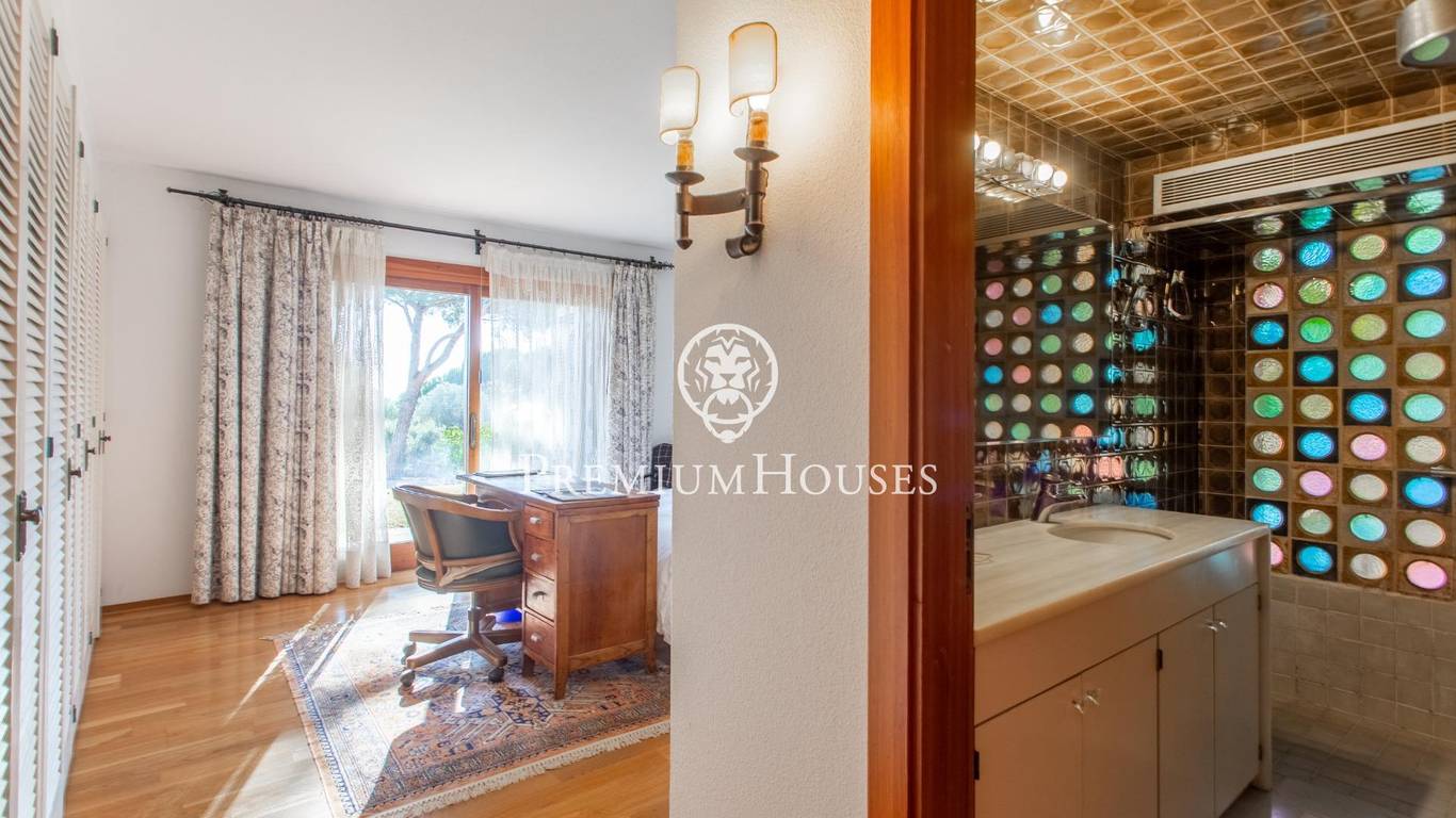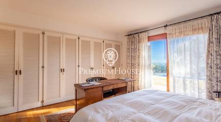 In Sant Andreu de Llavaneres, one of the most exclusive towns in the Maresme region, renowned for its elite residential developments and privileged residential environment, you will find this magnificent single-storey property with stunning sea views.It is a Mediterranean-style family home, built in exposed brick and located on a 4,623 m plot, guaranteeing tranquillity, privacy and a unique natural environment. The house has a floor area of 495 m, with a very practical layout and large windows that flood the spaces with natural light.The living area is organised around a spacious entrance hall leading to an elegant living room with a fireplace and a dining room divided into two areas, both with spectacular sea views and direct access to a charming porch and the garden. The generously sized kitchen includes a breakfast area with a fireplace, a pantry, a service area with access to the outside, an additional room and a guest toilet.The night area offers a master suite with sea views, access to the garden, a dressing room and a full bathroom, as well as a hallway leading to four additional bedrooms and a full bathroom. All rooms have large fitted wardrobes and parquet flooring.The property has gas heating, automatic irrigation, a water tank, and a large outdoor area with a swimming pool. Although it is a second-hand property that may require some updating, its potential is extraordinary due to its location, layout, and size.The property also includes a closed garage and an outdoor pergola with space for seven cars.