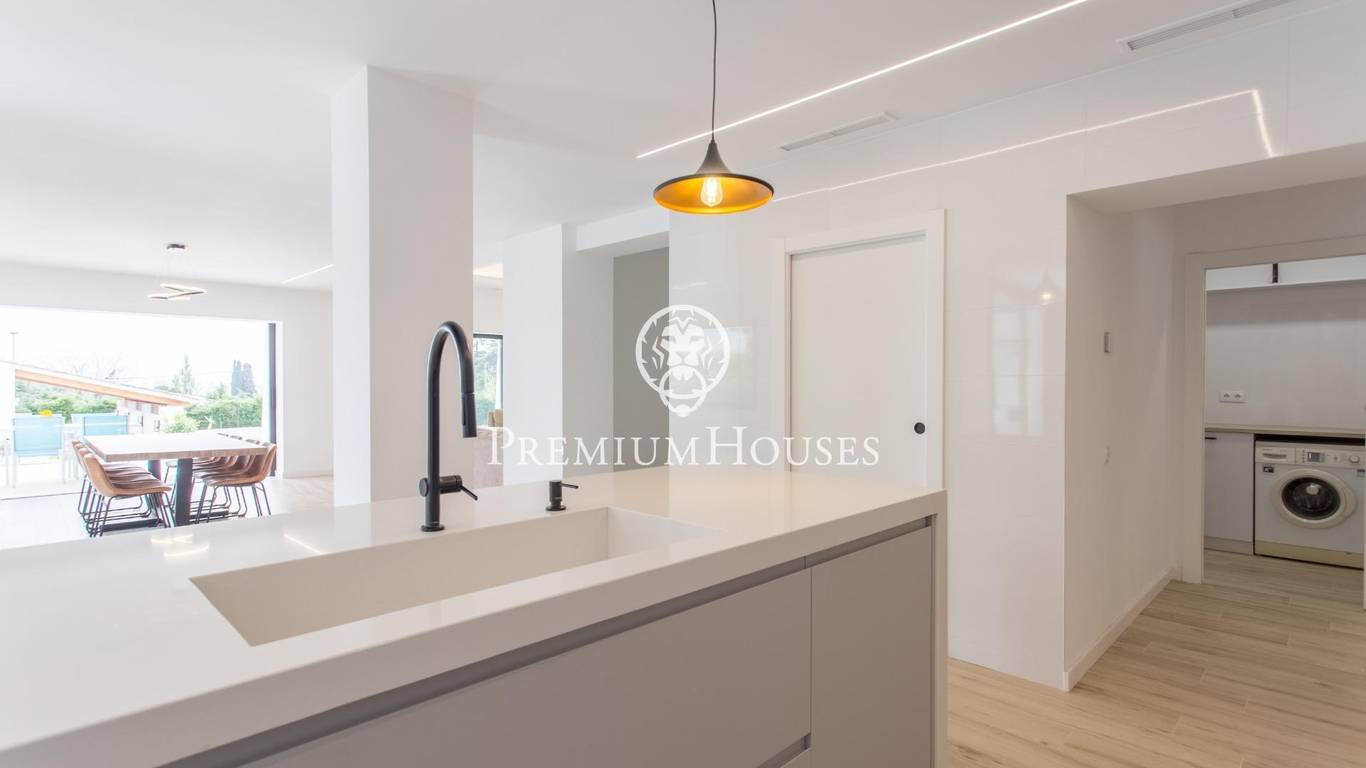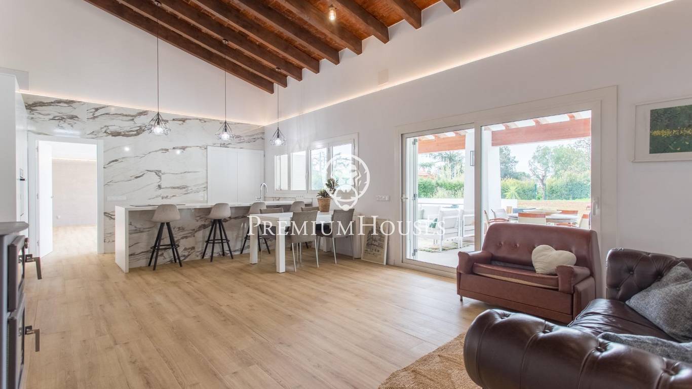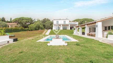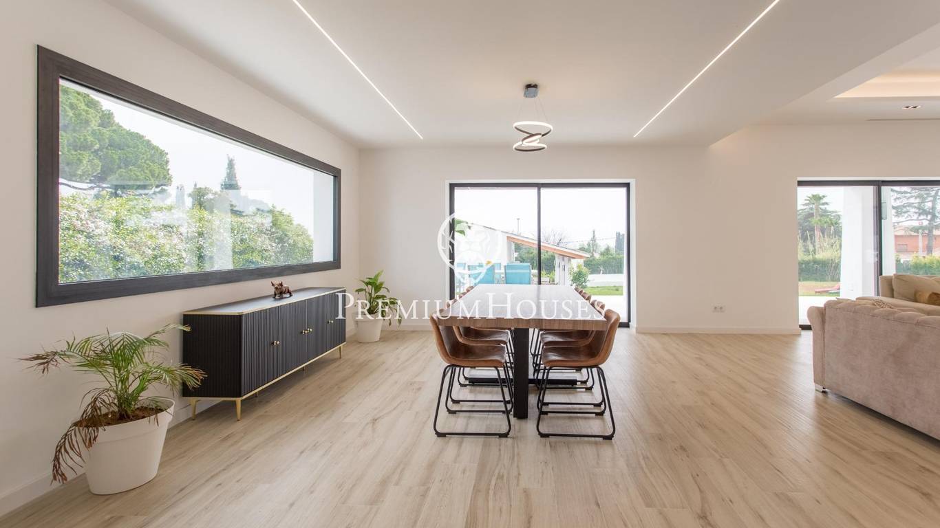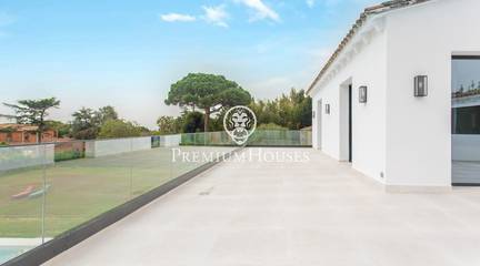 Spectacular fully renovated villa with sea views for sale in Sant Andreu de LlavaneresImpressive luxury villa located in a quiet and private area of Sant Andreu de Llavaneres. This mythical house, known as Mas Blanc, is located very close to the town center, the highway and the beach. This impeccable house has been renovated from the ground up, preserving all its details and its south-east orientation offers beautiful views of the Mediterranean A true haven of tranquilityUpon entering the house through a large door, we are greeted by an elegant staircase from yesteryear to give it the stately touch that permeates the entire property. We head to the large living room with high ceilings and large windows that not only give access to the main terrace, but also offer us great light and spectacular views of the garden. In the living room we find a pleasant reading and music area that invites us to disconnect while observing nature through its large windows. Taking care of every detail, luxury and good living have been perfected.On the same floor, matching the architecture, we find the kitchen and its impressive 5-meter island, a display case designed especially for this space and lights that match the shadows. All appliances are Siemens brand.Continuing the route on this same level we have a guest bedroom with an en-suite bathroom, as well as a study/office and a guest toilet. The guest room has two large terraces one of them being an interior garden. In addition to pantry and laundry. Direct access to the garage for three cars.Through some stairs we go down to a minimalist cellar that is always at the correct temperature and the engine room.The stately stairs lead us to the first floor where you will find the incredible master suite with high ceilings, bathroom with two sinks and dressing room. Access to the large terrace from where you can enjoy the incredible views. Also on this upper level are three other bedrooms, each with an en-suite bathroom and terraces.In addition to the main house, we have a guest house. Renovated with the same exquisiteness and delicacy as the main home.This annex consists of two bedrooms, living room with open kitchen, high ceilings and wooden beams. We will also find a multipurpose room, which now functions as a gym, and also has an area prepared to install a jacuzzi and sauna in the future. The guest house has a porch that is in front of a large pool, and surrounded by extensive gardens.All the renovation that has been done in this house is of the highest quality, taking into account every detail. Lighting, home automation, aerothermal energy, solar panels, automatic irrigation.In short, a luxurious property, in one of the most exquisite towns in Maresme.