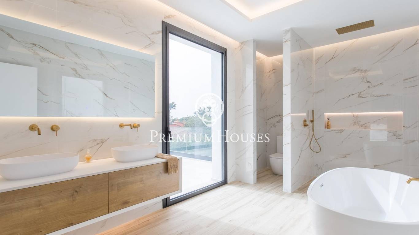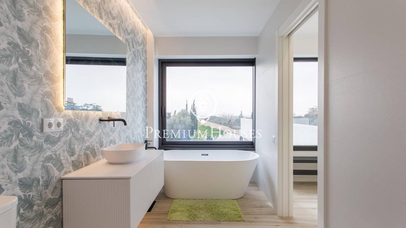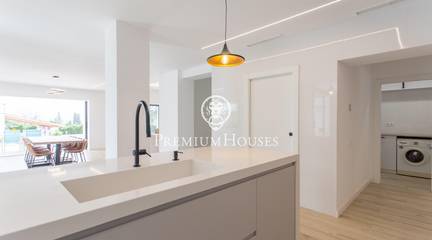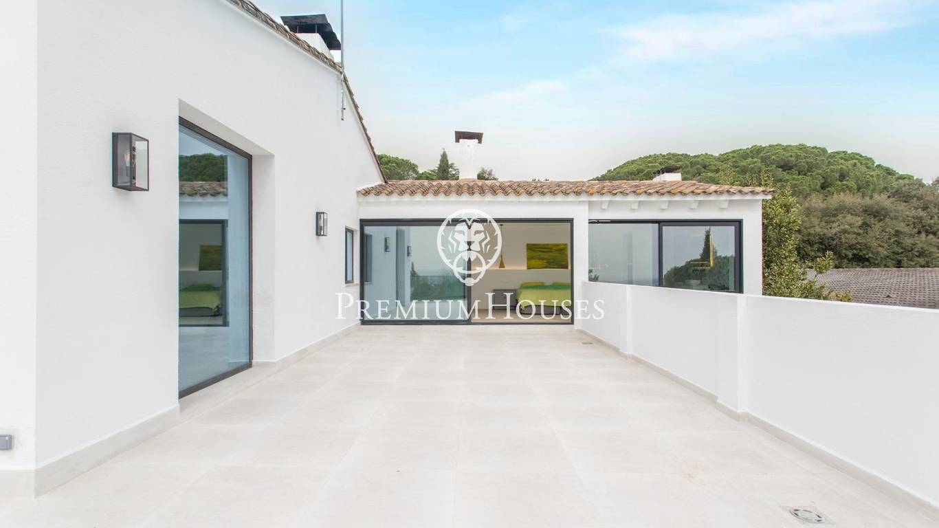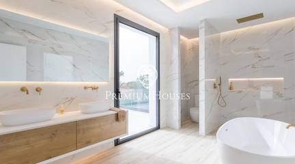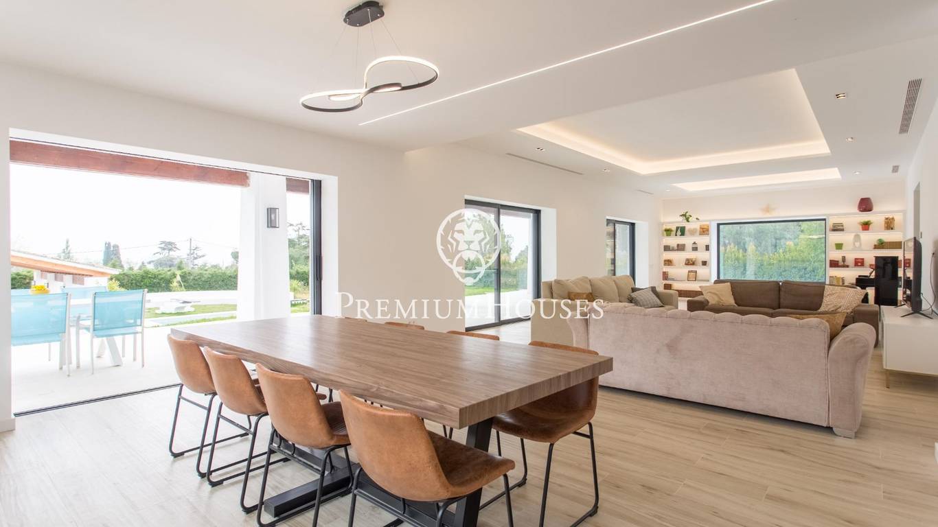 Spectacular fully renovated villa with sea views for sale in Sant Andreu de LlavaneresImpressive luxury villa located in a quiet and private area of Sant Andreu de Llavaneres. This mythical house, known as Mas Blanc, is located very close to the town center, the highway and the beach. This impeccable house has been renovated from the ground up, preserving all its details and its south-east orientation offers beautiful views of the Mediterranean A true haven of tranquilityUpon entering the house through a large door, we are greeted by an elegant staircase from yesteryear to give it the stately touch that permeates the entire property. We head to the large living room with high ceilings and large windows that not only give access to the main terrace, but also offer us great light and spectacular views of the garden. In the living room we find a pleasant reading and music area that invites us to disconnect while observing nature through its large windows. Taking care of every detail, luxury and good living have been perfected.On the same floor, matching the architecture, we find the kitchen and its impressive 5-meter island, a display case designed especially for this space and lights that match the shadows. All appliances are Siemens brand.Continuing the route on this same level we have a guest bedroom with an en-suite bathroom, as well as a study/office and a guest toilet. The guest room has two large terraces one of them being an interior garden. In addition to pantry and laundry. Direct access to the garage for three cars.Through some stairs we go down to a minimalist cellar that is always at the correct temperature and the engine room.The stately stairs lead us to the first floor where you will find the incredible master suite with high ceilings, bathroom with two sinks and dressing room. Access to the large terrace from where you can enjoy the incredible views. Also on this upper level are three other bedrooms, each with an en-suite bathroom and terraces.In addition to the main house, we have a guest house. Renovated with the same exquisiteness and delicacy as the main home.This annex consists of two bedrooms, living room with open kitchen, high ceilings and wooden beams. We will also find a multipurpose room, which now functions as a gym, and also has an area prepared to install a jacuzzi and sauna in the future. The guest house has a porch that is in front of a large pool, and surrounded by extensive gardens.All the renovation that has been done in this house is of the highest quality, taking into account every detail. Lighting, home automation, aerothermal energy, solar panels, automatic irrigation.In short, a luxurious property, in one of the most exquisite towns in Maresme.