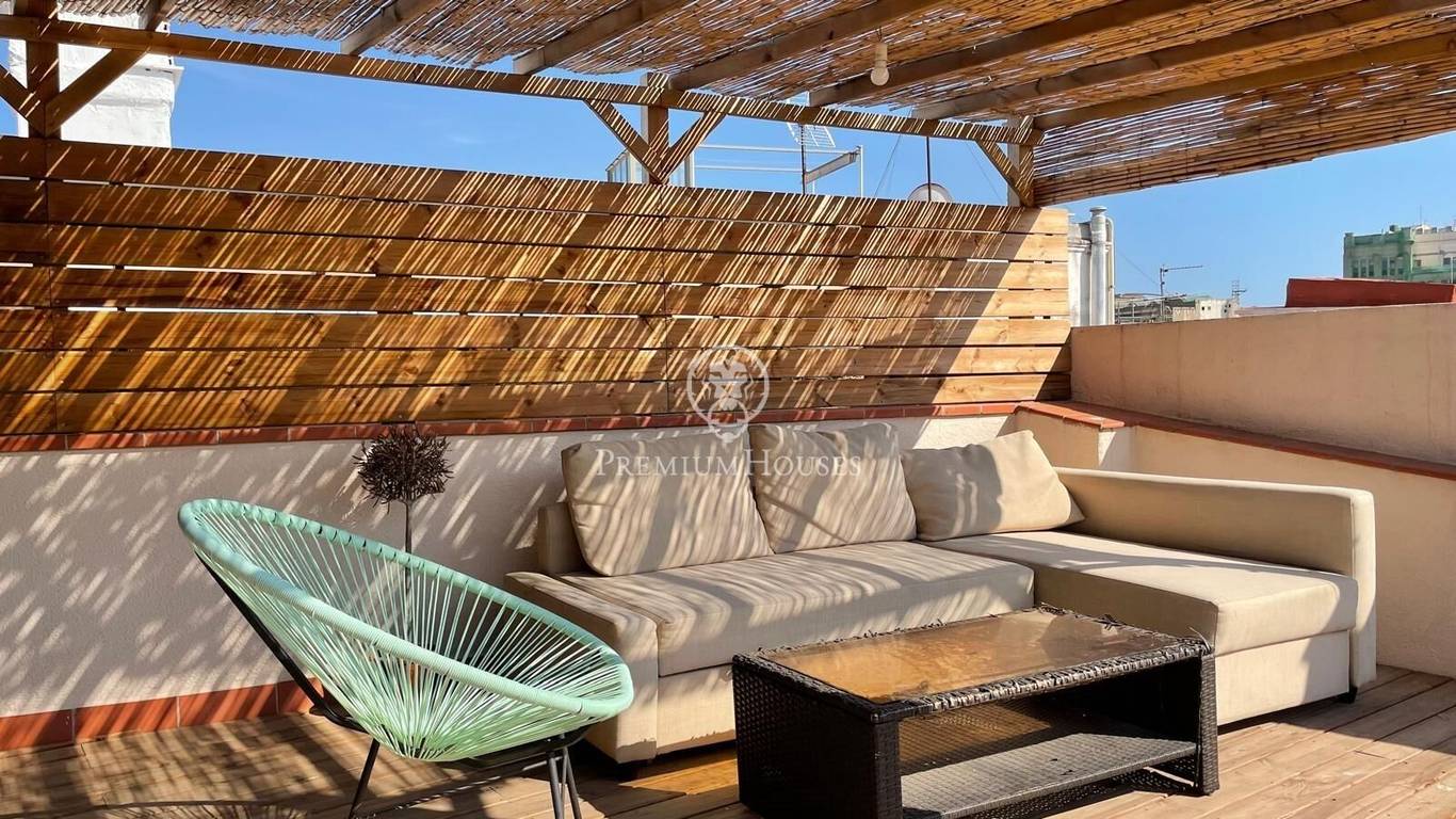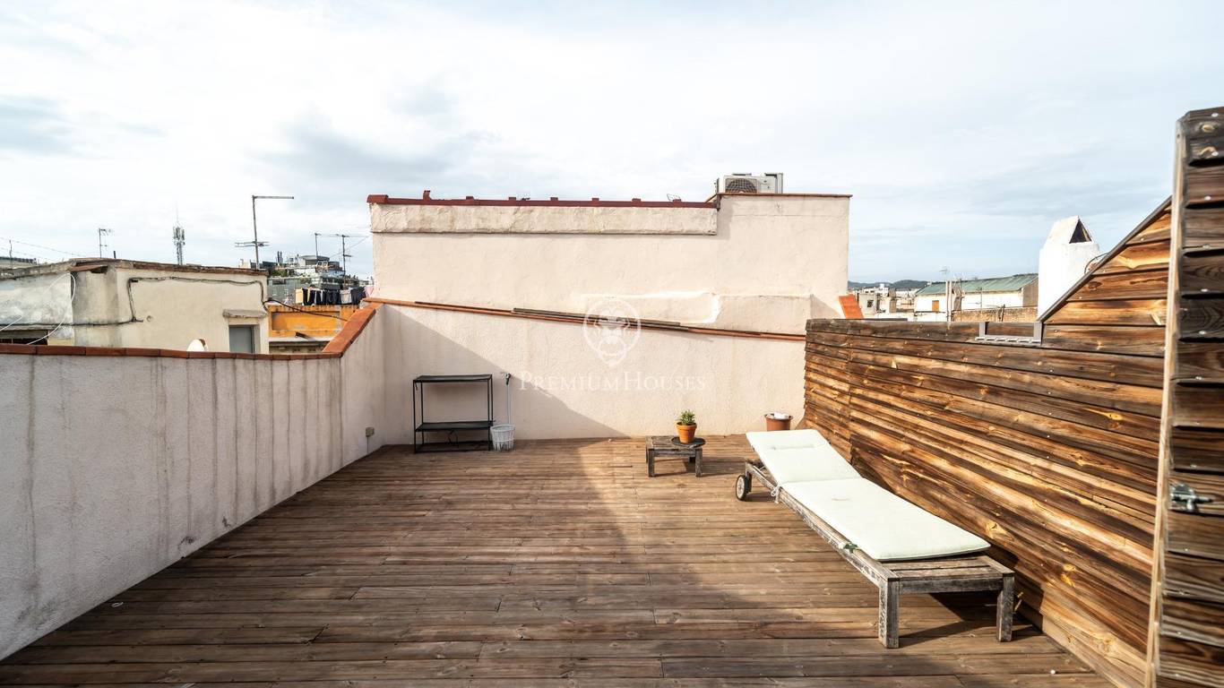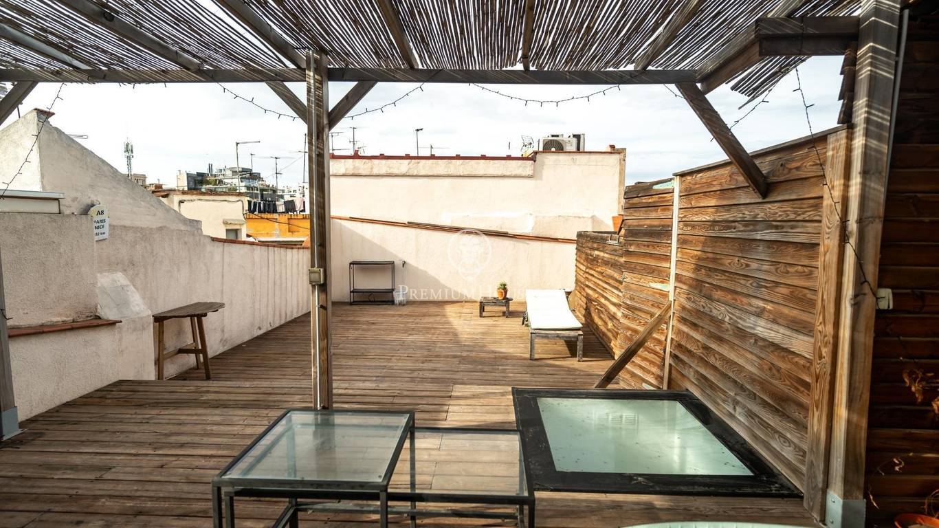 Exclusively at Premium Houses, we present this charming penthouse in the very heart of El Born a unique opportunity to begin your new life in Barcelona or to invest in one of the citys most sought-after neighbourhoods.The property offers 62 m of living space (65 m built) and a spectacular 57 m private terrace, fully furnished and designed for enjoying the Mediterranean sun: a relaxing lounge area, space for outdoor dining, and open city views in a quiet and private setting.Inside, the penthouse features a bright and welcoming loft-style layout, including:Spacious and light-filled living and dining areaFully equipped open-plan kitchenDouble bedroom with ample wardrobe spaceModern full bathroom10 m loft area, perfect as a study, home office or potential second bedroomThe apartment retains the authentic charm of El Born with high ceilings, exposed wooden beams and original elements, combined with modern comforts such as air conditioning, large windows and abundant natural light.The property is sold ready to move into, with both the apartment and the terrace fully furnished making it an ideal choice either as a personal residence or a high-yield rental investment in one of Barcelonas most desirable areas.Located just minutes from the beach, Ciutadella Park and the Gothic Quarter, this penthouse offers a truly unique lifestyle: Mediterranean, urban and effortlessly charming the kind of home that is increasingly rare to find.Dont miss this opportunity.Contact Premium Houses to schedule a private viewing and experience for yourself the exceptional lifestyle or investment potential that this one-of-a-kind penthouse in El Born has to offer. Exceptional opportunities dont wait.