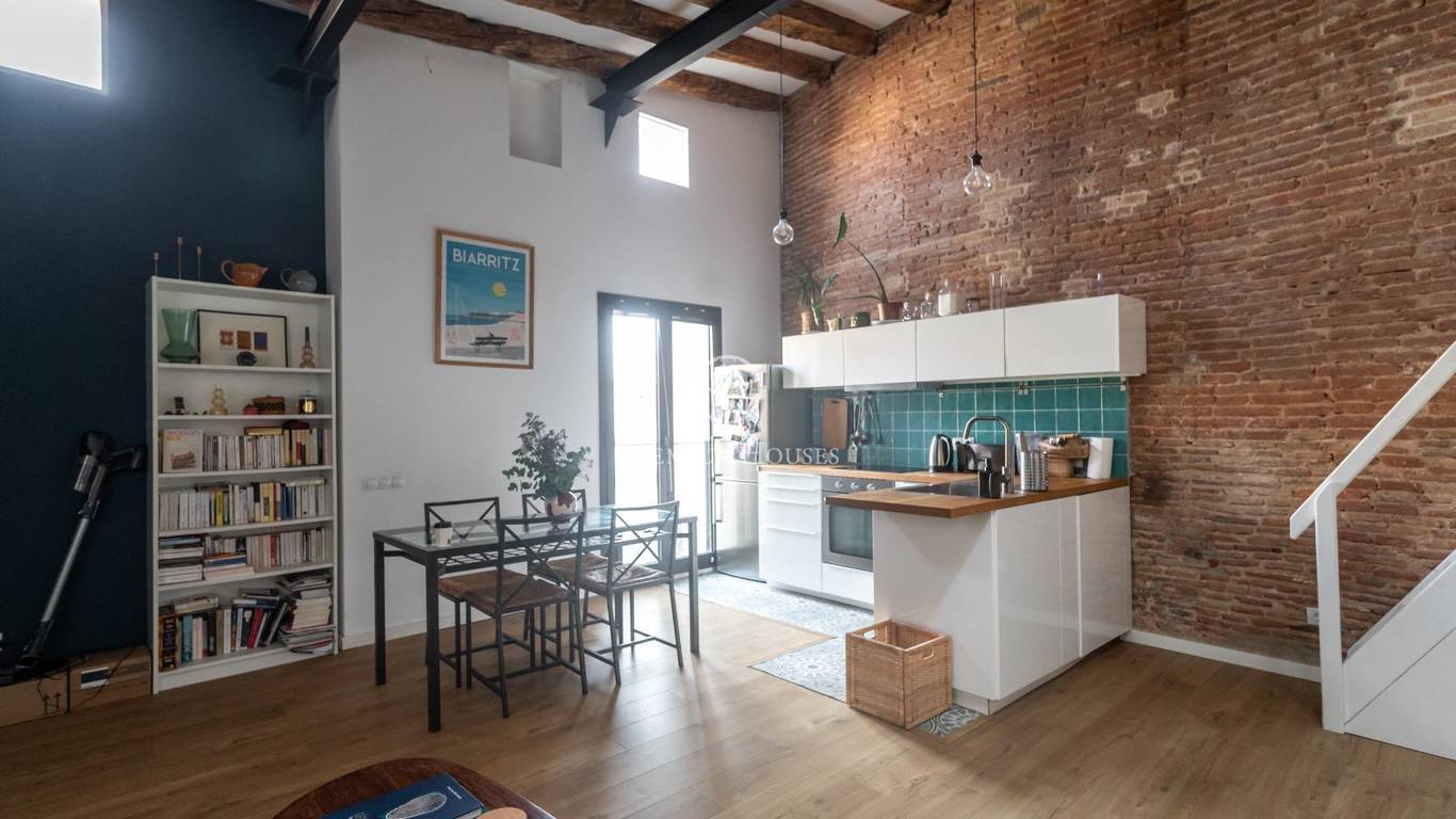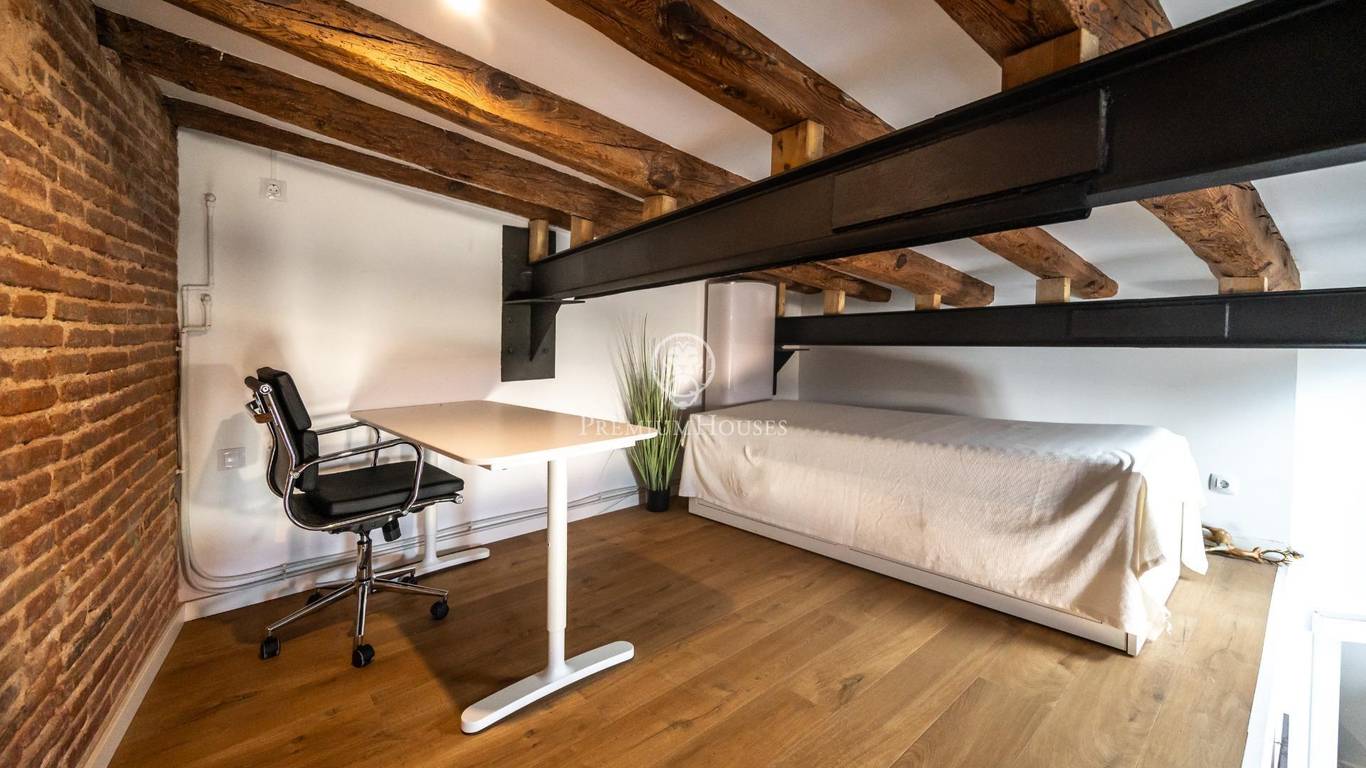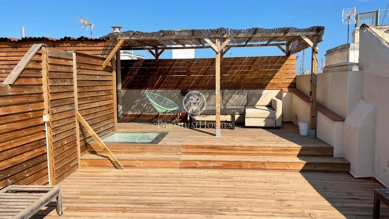 Exclusively at Premium Houses, we present this charming penthouse in the very heart of El Born a unique opportunity to begin your new life in Barcelona or to invest in one of the citys most sought-after neighbourhoods.The property offers 62 m of living space (65 m built) and a spectacular 57 m private terrace, fully furnished and designed for enjoying the Mediterranean sun: a relaxing lounge area, space for outdoor dining, and open city views in a quiet and private setting.Inside, the penthouse features a bright and welcoming loft-style layout, including:Spacious and light-filled living and dining areaFully equipped open-plan kitchenDouble bedroom with ample wardrobe spaceModern full bathroom10 m loft area, perfect as a study, home office or potential second bedroomThe apartment retains the authentic charm of El Born with high ceilings, exposed wooden beams and original elements, combined with modern comforts such as air conditioning, large windows and abundant natural light.The property is sold ready to move into, with both the apartment and the terrace fully furnished making it an ideal choice either as a personal residence or a high-yield rental investment in one of Barcelonas most desirable areas.Located just minutes from the beach, Ciutadella Park and the Gothic Quarter, this penthouse offers a truly unique lifestyle: Mediterranean, urban and effortlessly charming the kind of home that is increasingly rare to find.Dont miss this opportunity.Contact Premium Houses to schedule a private viewing and experience for yourself the exceptional lifestyle or investment potential that this one-of-a-kind penthouse in El Born has to offer. Exceptional opportunities dont wait.