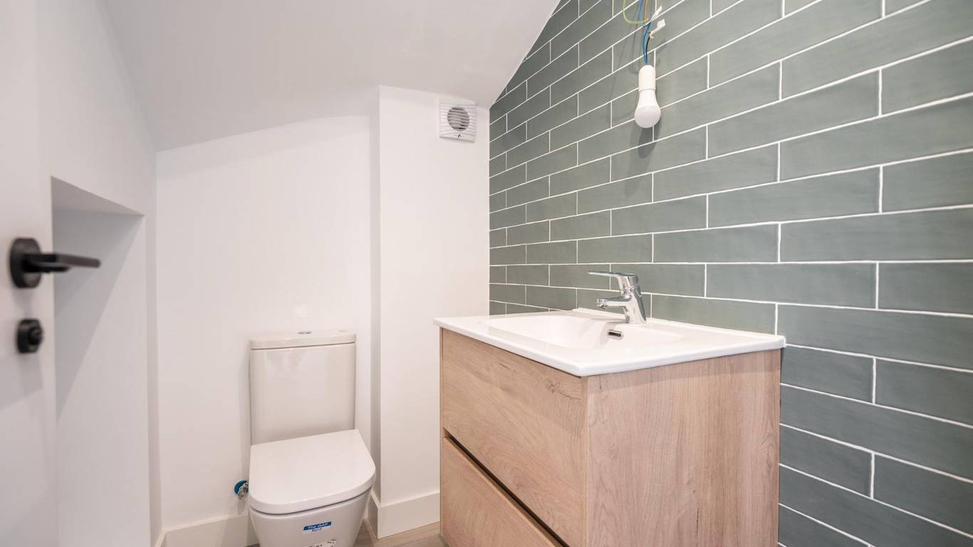 Im Obergeschoss befinden sich drei Schlafzimmer, darunter das Hauptschlafzimmer mit eigenem Bad en suite, sowie ein weiteres voll ausgestattetes Badezimmer für die übrigen Zimmer.
