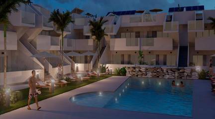 The communal areas include a large swimming pool with a waterfall, a green area with sun loungers, a playground for the little ones, and sports areas with all the necessary equipment. More good news: this development will soon have four paddle tennis and tennis courts, a bowling alley, and a bar/cafeteria opening their doors this summer!