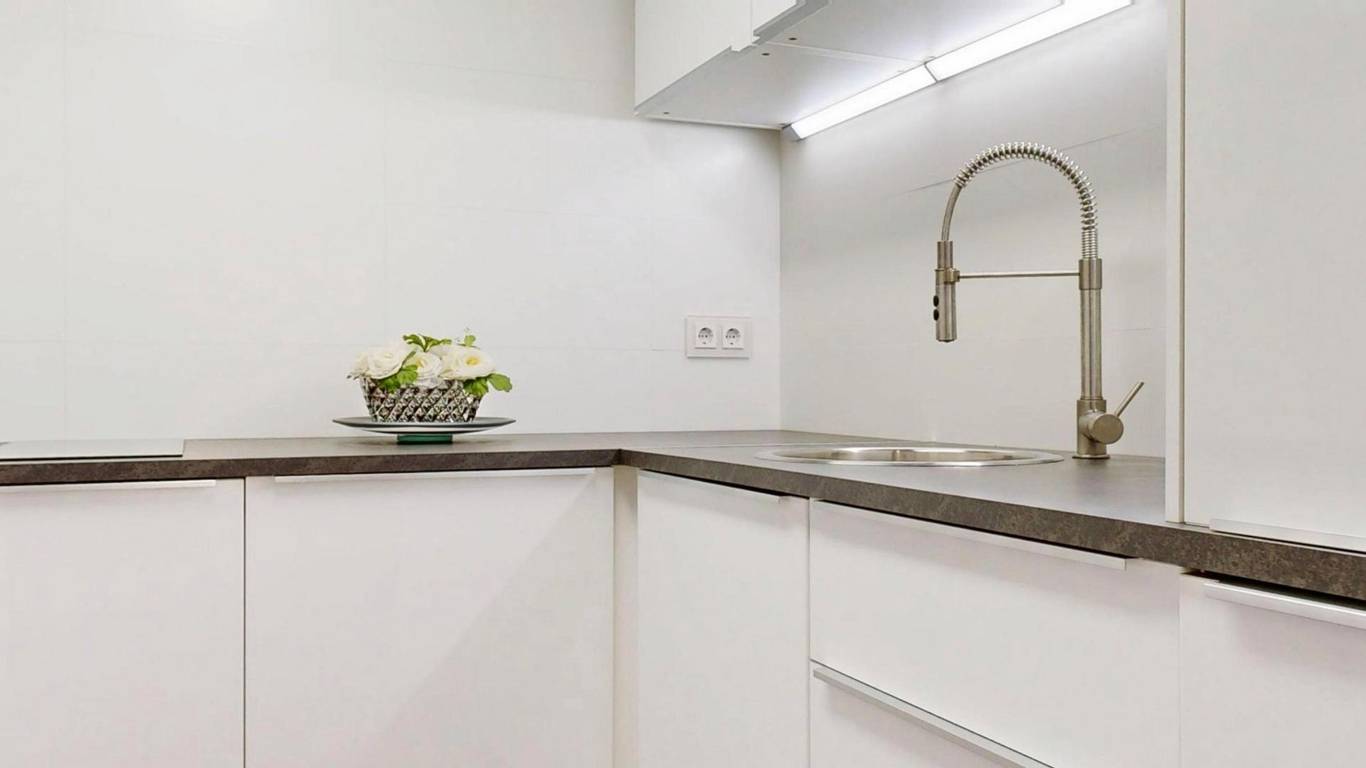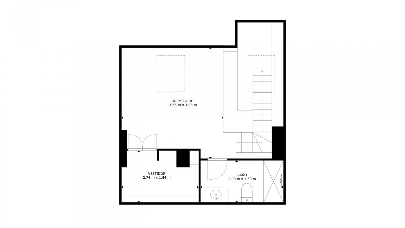 The property is a duplex flat, on the ground floor of which we find the main entrance, a separate fitted and equipped kitchen, and the hallway leading to the living room, with a built-in cupboard on the right under the stairs leading to the upper floor. In our cosy living room, decorated with modern and functional furniture, there is a full bathroom and another room that can be separated from the living room with a sliding door, giving you the option of converting it into a bedroom with a full bathroom for your convenience if you have guests staying over or simply need to rest on its comfortable sofa bed. The entire ground floor has wooden floors and central air conditioning. You will also enjoy a balcony overlooking Sebastián Souvirón Street and the surrounding area.