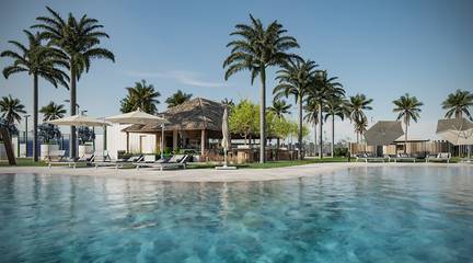 There's a choice between ground-floor bungalow apartments and first-floor penthouses. These homes feature a low-maintenance garden or panoramic solarium, depending on the type of property. The new Alba resort offers not only security but also a school, restaurant, beach bar, park, commercial center with a supermarket, and a sandy beach (artificial beach).