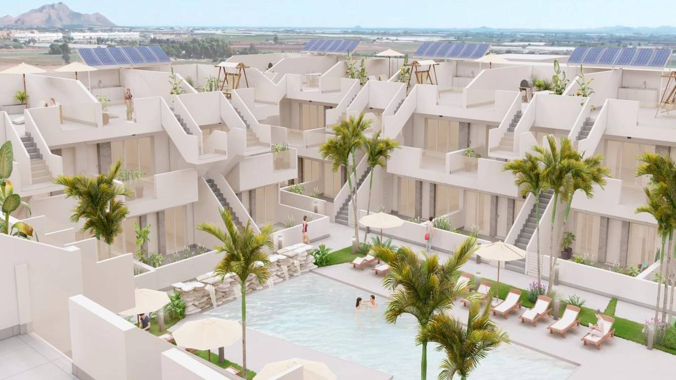 The communal areas include a large swimming pool with a waterfall, a green area with sun loungers, a playground for the little ones, and sports areas with all the necessary equipment. More good news: this development will soon have four paddle tennis and tennis courts, a bowling alley, and a bar/cafeteria opening their doors this summer!