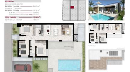 Exclusive Mediterranean Living in Lo Marabú, Ciudad QuesadaPrime Location with Nature and ConvenienceDiscover the charm of living in Lo Marabú, Ciudad Quesada, an exclusive residential area that combines modern comfort with the beauty of Mediterranean nature. Nestled in a prime location, this development offers easy access to essential services while providing a serene, tranquil environment. Just a short drive away, youll find the stunning salt lagoons of La Mata and Torrevieja, a paradise for nature enthusiasts, photographers, and those seeking wellness.Beautiful Beaches and Outdoor ActivitiesOnly 15 minutes away by car, the unspoiled beaches of Guardamar del Segura and Torrevieja invite you to enjoy golden dunes and crystal-clear waters. These coastal gems offer opportunities for relaxation, water sports, and picturesque walks along the shore. For outdoor enthusiasts, the area boasts numerous hiking and cycling trails, while golf lovers will appreciate the proximity to several prestigious golf courses, providing a first-class sporting experience.High-Quality Homes and AmenitiesThis residential complex features thoughtfully designed homes, including:Bungalows: Ground-floor units with private gardens or top-floor options with solariums. All bungalows include two bedrooms, two bathrooms, a parking space, and a storage room, set around a central communal area with a swimming pool and landscaped gardens.Villas: Independent properties with three bedrooms and 2/3 bathrooms, available in one- or two-story layouts. Each villa includes a private pool, a solarium, and parking within the plot. Optional basements are also available.Modern Comfort and Exceptional FeaturesEvery home is built with top-quality materials and finishes:PVC windows with double glazing and remote-controlled motorized shutters.Electric underfloor heating in bathrooms.Ducted air conditioning installation.Villas with private pools (3.00 x 6.00 m) and stainless steel showers.Community pools with a childrens area for bungalow residents.As a special launch offer, select homes include white goods and a furniture package.Excellent Connectivity and Local HighlightsStrategically located in Rojales, Alicante, this development offers excellent infrastructure and connectivity:Alicante-Elche Airport (ALC): 38 km (35 minutes by car).Murcia-Corvera Airport (RMU): 65 km (50 minutes by car).Proximity to major roads such as the AP-7 and N-332 ensures easy access to nearby cities and attractions.Local shopping centers, restaurants, and daily amenities are within walking distance.Embrace Mediterranean LivingWith its perfect blend of modern living, natural beauty, and unparalleled convenience, this residential complex in Lo Marabú is the ideal choice for those seeking a high-quality lifestyle. Dont miss the chance to invest in your dream home in the heart of the Mediterranean. Contact us today to schedule a viewing or to learn more about this exceptional development