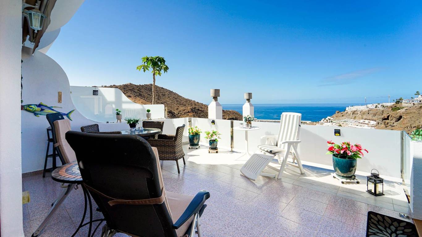 This fantastic apartment in Barranco Agua de la Perra in Puerto Rico offers everything you could wish for. The large terrace is undoubtedly the highlight of the property: here you can enjoy the afternoon sun and stunning sunsets over the Atlantic a magical setting for dinners, relaxation and unforgettable moments.