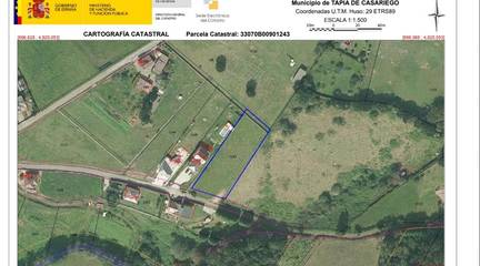 En la aldea de Viacoba (Tapia de Casariego) se encuentra este magnífico terreno de 2.138m (según nota simple) con una superficie total edificable de 300m (vivienda) 300m de usos permitidos. Disponible informe de edificabilidad emitido por el Ayto. de Tapia de Casariego.