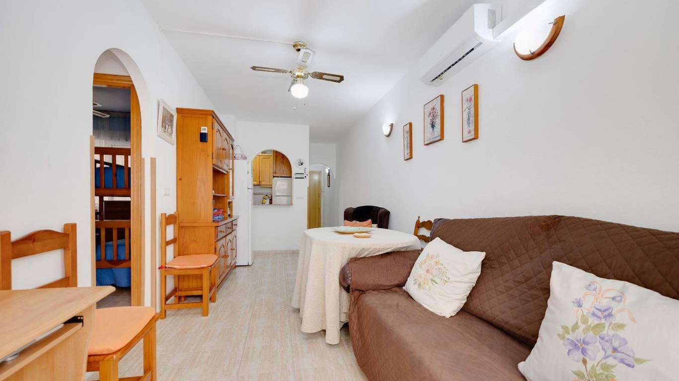 Sale · Apartment · Piso en Torrevieja con 3 Dormitorios y 1 Baño, a 10 Minutos Caminando de La Playa. Garaje, Trastero, Piscina Comunitaria, Terraza , Cerca de Mercadona y Bus. Se Vende Amueblado.