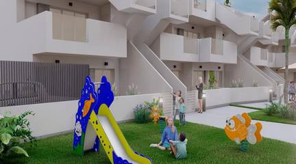 The communal areas include a large swimming pool with a waterfall, a green area with sun loungers, a playground for the little ones, and sports areas with all the necessary equipment. More good news: this development will soon have four paddle tennis and tennis courts, a bowling alley, and a bar/cafeteria opening their doors this summer!