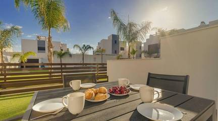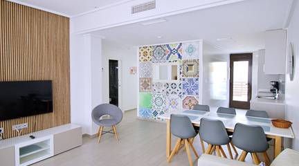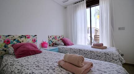New Mediterranean Apartments Just 100 m from the Beach in Torre de la HoradadaExclusive Seaside Living on the Costa BlancaDiscover this new residential project in Torre de la Horadada, ideally located just 100 meters from the sea, between Playa de los Jesuitas and Playa del Conde, two of the most beautiful beaches in the area. This exclusive development features only 6 modern Mediterranean-style apartments, offering a unique blend of coastal charm and contemporary comfort in one of the most sought-after locations on the Costa Blanca South.Situated in a quiet, picturesque coastal village, these homes are surrounded by essential services such as supermarkets, restaurants, cafes, and shops all within walking distance. The area is renowned for its relaxed atmosphere, crystal-clear waters, and family-friendly environment.Elegant Design and Quality FinishesEach apartment includes 2 bedrooms and 1 or 2 bathrooms, thoughtfully designed to maximize space and natural light. The interiors feature:Security entrance door for added peace of mindBuilt-in wardrobes in bedrooms, fully lined and finishedModern bathrooms equipped with furniture, mirrors, and shower screensPre-installation of ducted air conditioning for year-round comfortThese high-quality finishes create bright and functional living spaces, perfect for both permanent residence and holiday use.Rooftop Solarium with Pool and Chill-Out AreaThe standout feature of this development is the communal rooftop solarium, accessible by stairs or elevator. Residents can enjoy a rooftop swimming pool, outdoor kitchen area, barbecue and dining spaces under pergolas, and a sunbathing area with artificial grass. This exclusive rooftop oasis provides the perfect place to relax under the spanish sun.Prime Location and Excellent ConnectivityTorre de la Horadada is known for its stunning coastline, marina, and vibrant promenade. The development offers easy access to nearby destinations:Beaches: 100 mLo Romero Golf Course: 7 kmSan Pedro del Pinatar: 5 kmMurcia-Corvera Airport: 40 minutes (55 km)Alicante Airport: 55 minutes (75 km)Your Dream Beach Home AwaitsWith its unbeatable location, elegant design, and exceptional communal amenities, this new boutique residential project in Torre de la Horadada is the perfect opportunity to enjoy the Mediterranean lifestyle.Contact us today to arrange a visit and secure your new home just steps from the sea on the Costa Blanca.