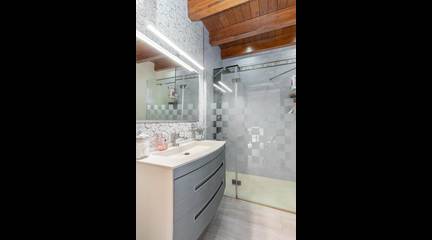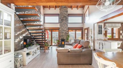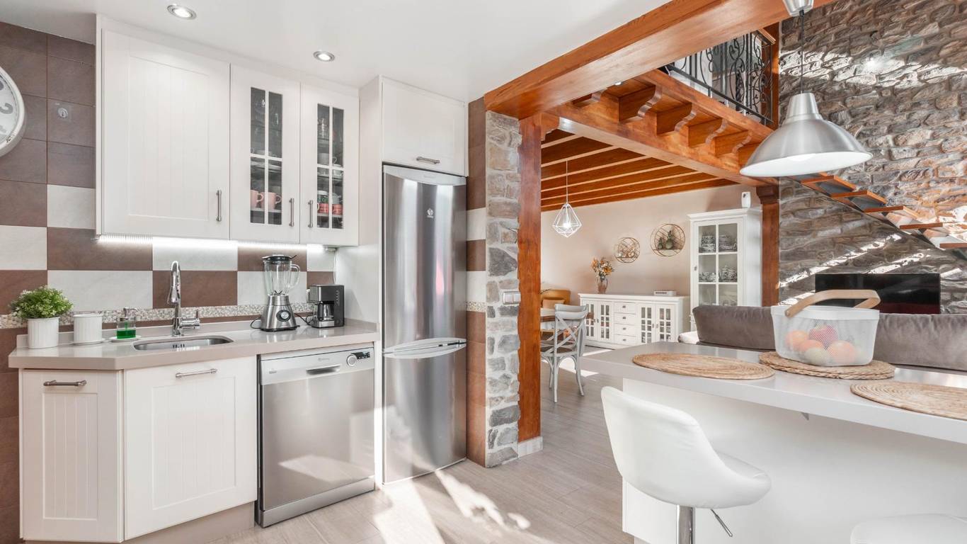 Impecablemente decorado con gran estilo y modernidad y con materiales de alta calidad, como todos los suelos de porcelánico rectificado y sus ventanas de kommerling, interior y exterior de piedra natural. La casa esta inteligentemente distribuida en 2 plantas y tiene una orientación perfecta llena de gran luminosidad gracias a sus grandes ventanas y espacios abiertos.