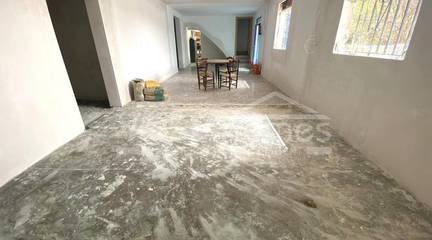 The house upstairs has been almost fully and recently renovated (apart from one room) with new double glazed windows & central heating and H&C aircon in the main bedroom and consists of a hallway, open plan living & dining room, modern kitchen with marble worktops, 3 bedrooms (1 with dressing room) and a bathroom.