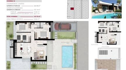 Exclusive Mediterranean Living in Lo Marabú, Ciudad QuesadaPrime Location with Nature and ConvenienceDiscover the charm of living in Lo Marabú, Ciudad Quesada, an exclusive residential area that combines modern comfort with the beauty of Mediterranean nature. Nestled in a prime location, this development offers easy access to essential services while providing a serene, tranquil environment. Just a short drive away, youll find the stunning salt lagoons of La Mata and Torrevieja, a paradise for nature enthusiasts, photographers, and those seeking wellness.Beautiful Beaches and Outdoor ActivitiesOnly 15 minutes away by car, the unspoiled beaches of Guardamar del Segura and Torrevieja invite you to enjoy golden dunes and crystal-clear waters. These coastal gems offer opportunities for relaxation, water sports, and picturesque walks along the shore. For outdoor enthusiasts, the area boasts numerous hiking and cycling trails, while golf lovers will appreciate the proximity to several prestigious golf courses, providing a first-class sporting experience.High-Quality Homes and AmenitiesThis residential complex features thoughtfully designed homes, including:Bungalows: Ground-floor units with private gardens or top-floor options with solariums. All bungalows include two bedrooms, two bathrooms, a parking space, and a storage room, set around a central communal area with a swimming pool and landscaped gardens.Villas: Independent properties with three bedrooms and 2/3 bathrooms, available in one- or two-story layouts. Each villa includes a private pool, a solarium, and parking within the plot. Optional basements are also available.Modern Comfort and Exceptional FeaturesEvery home is built with top-quality materials and finishes:PVC windows with double glazing and remote-controlled motorized shutters.Electric underfloor heating in bathrooms.Ducted air conditioning installation.Villas with private pools (3.00 x 6.00 m) and stainless steel showers.Community pools with a childrens area for bungalow residents.As a special launch offer, select homes include white goods and a furniture package.Excellent Connectivity and Local HighlightsStrategically located in Rojales, Alicante, this development offers excellent infrastructure and connectivity:Alicante-Elche Airport (ALC): 38 km (35 minutes by car).Murcia-Corvera Airport (RMU): 65 km (50 minutes by car).Proximity to major roads such as the AP-7 and N-332 ensures easy access to nearby cities and attractions.Local shopping centers, restaurants, and daily amenities are within walking distance.Embrace Mediterranean LivingWith its perfect blend of modern living, natural beauty, and unparalleled convenience, this residential complex in Lo Marabú is the ideal choice for those seeking a high-quality lifestyle. Dont miss the chance to invest in your dream home in the heart of the Mediterranean. Contact us today to schedule a viewing or to learn more about this exceptional development