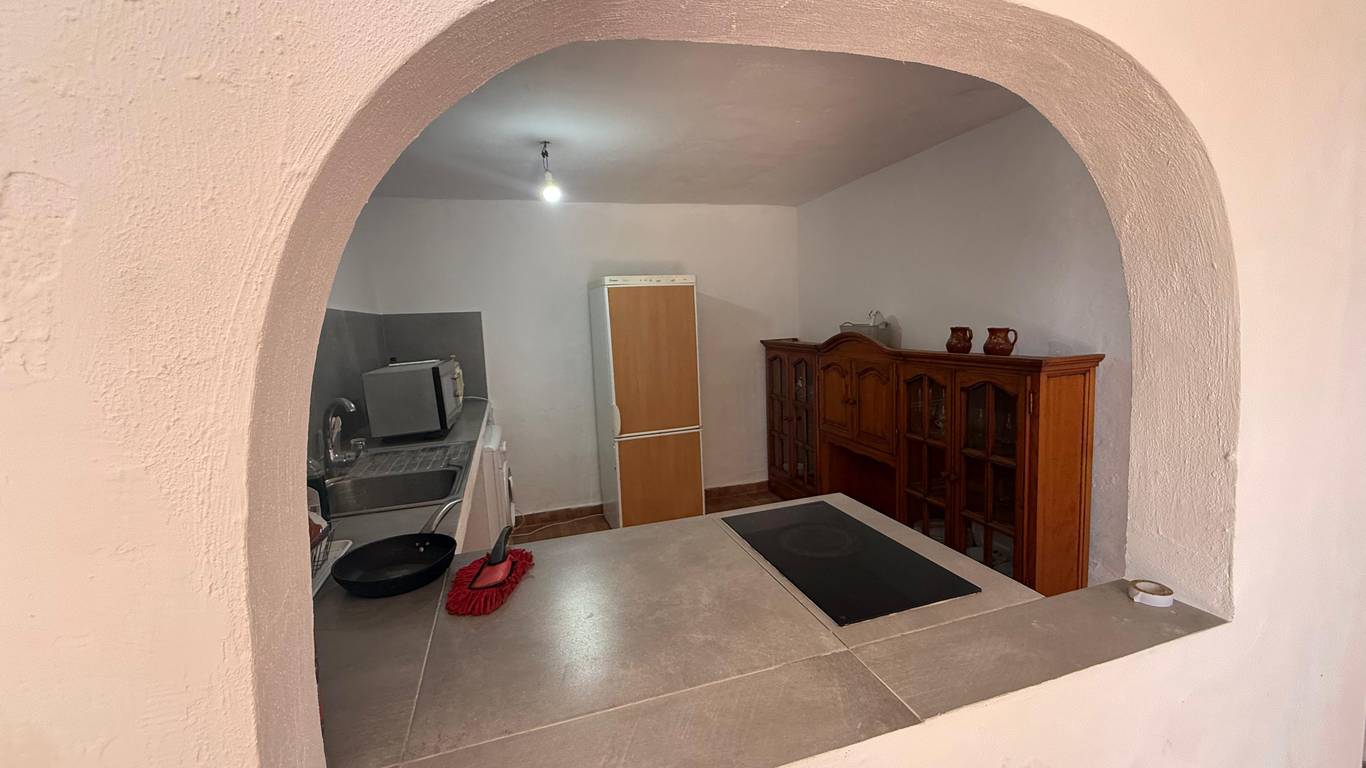 Independent kitchen with guest toilet and pantry.