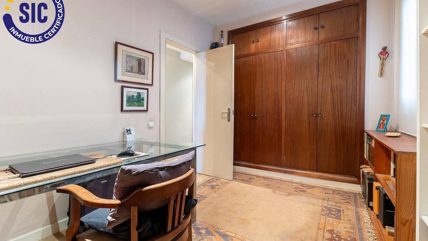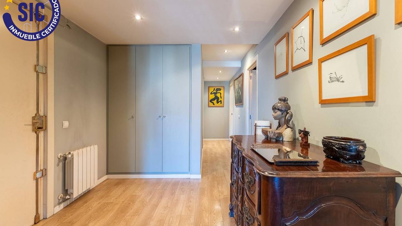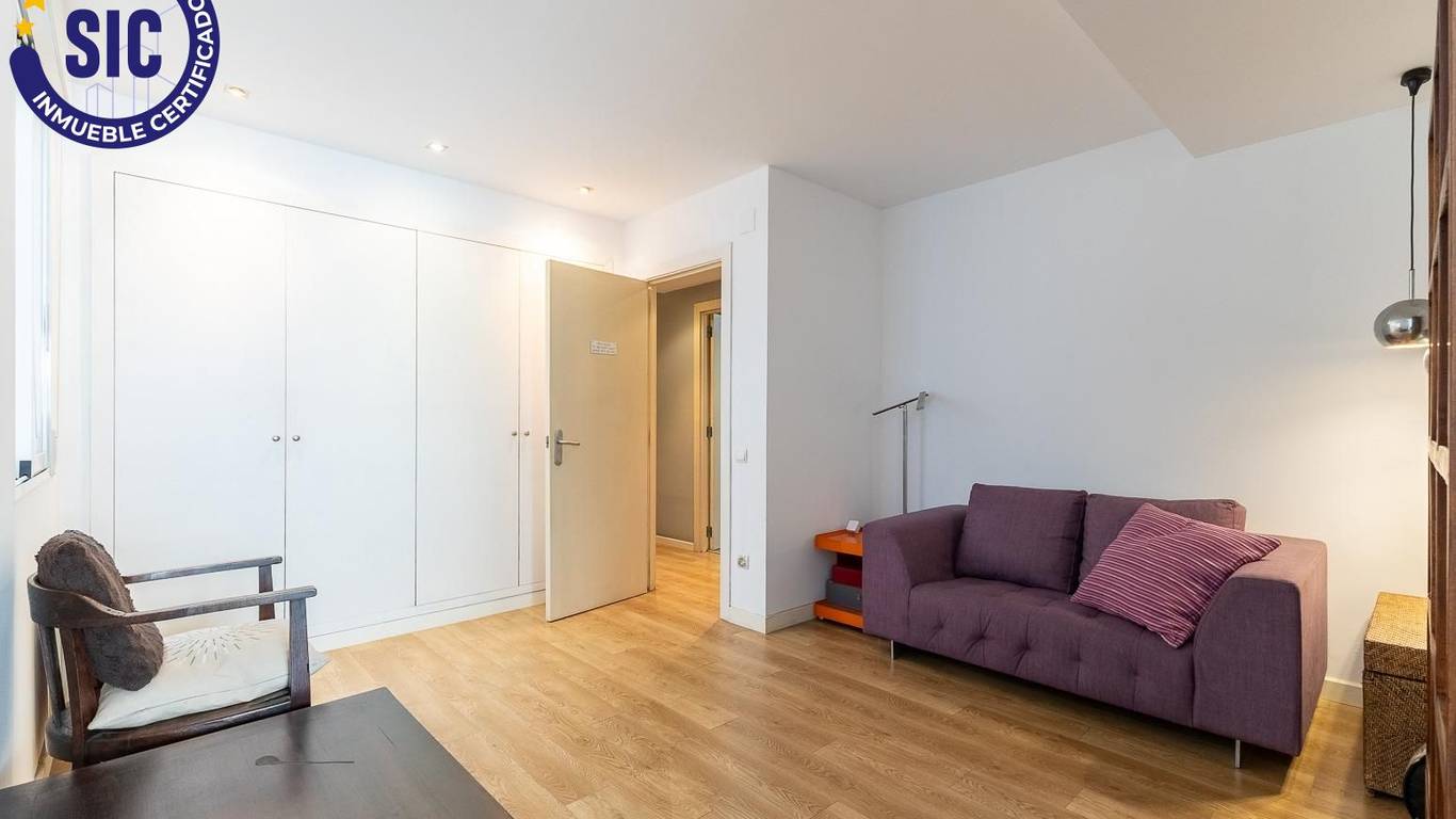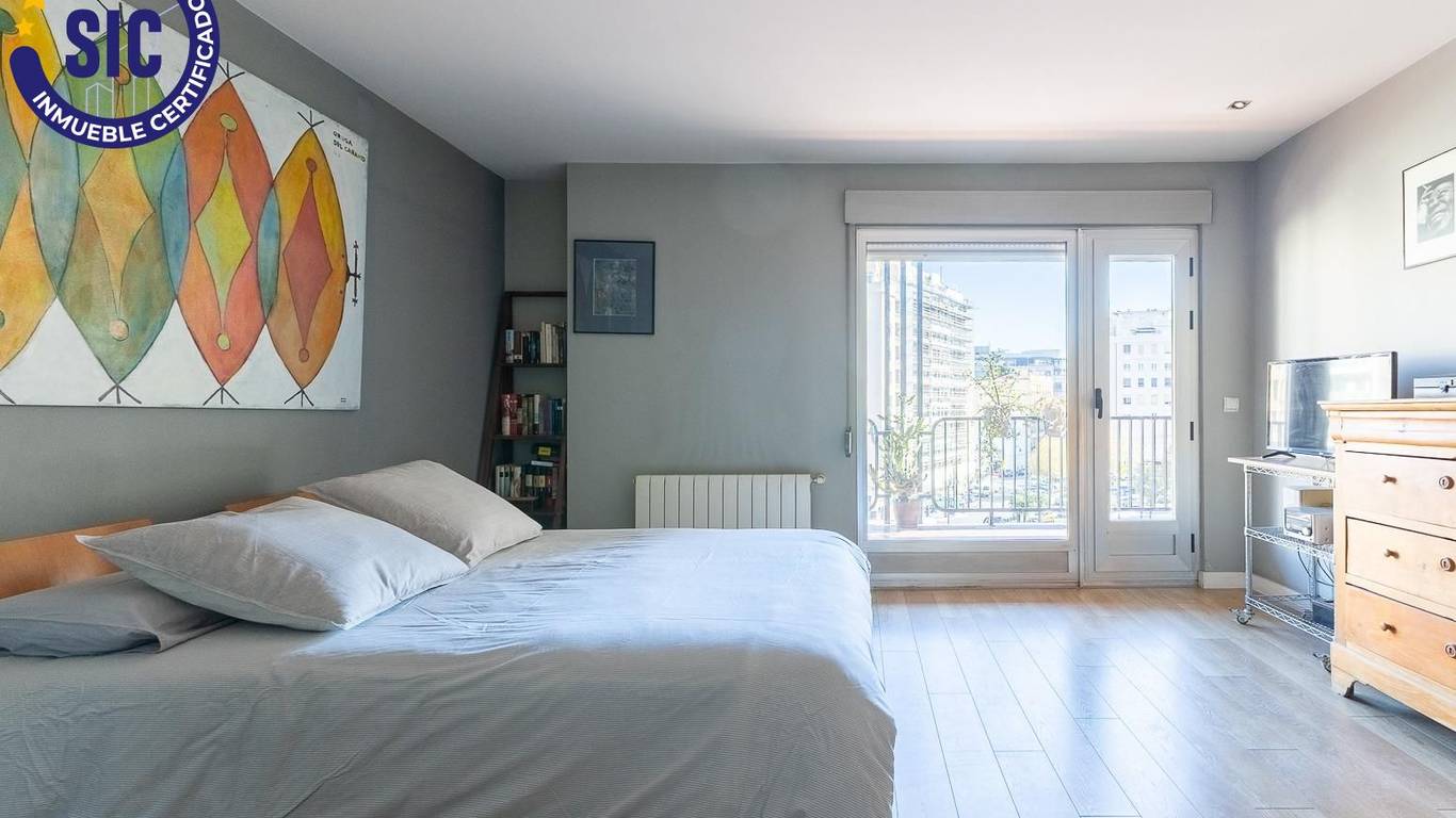 You enter the home through a spacious hall that leads to the living-dining room and to one of the main bedrooms, both of which have direct access to an 18 m east-facing terrace, ideal for enjoying the morning sun and open views over Plaza de España.