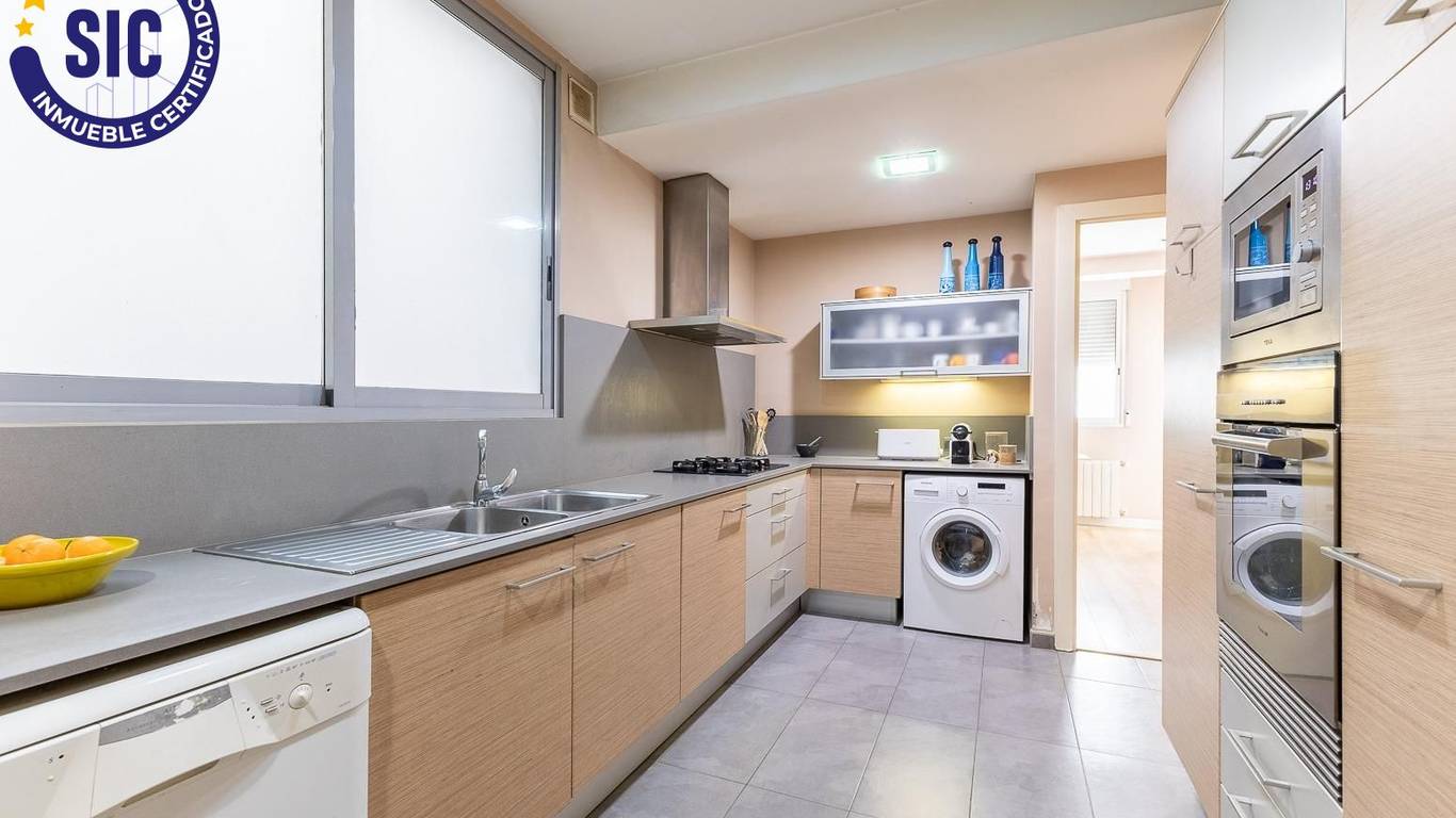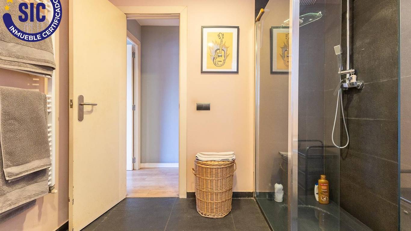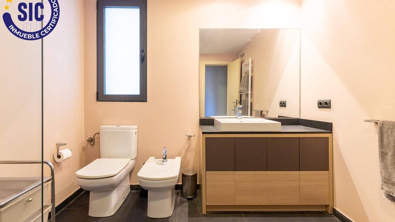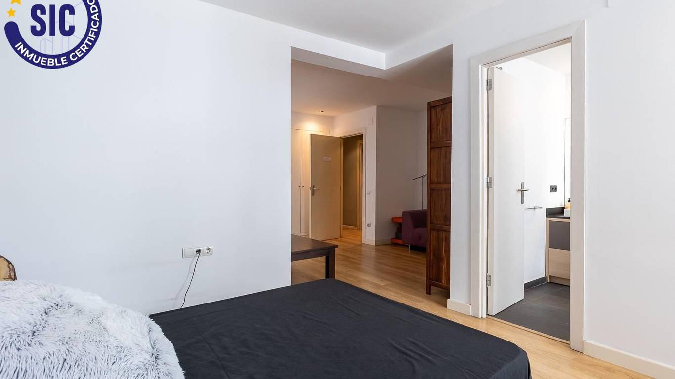 You enter the home through a spacious hall that leads to the living-dining room and to one of the main bedrooms, both of which have direct access to an 18 m east-facing terrace, ideal for enjoying the morning sun and open views over Plaza de España.